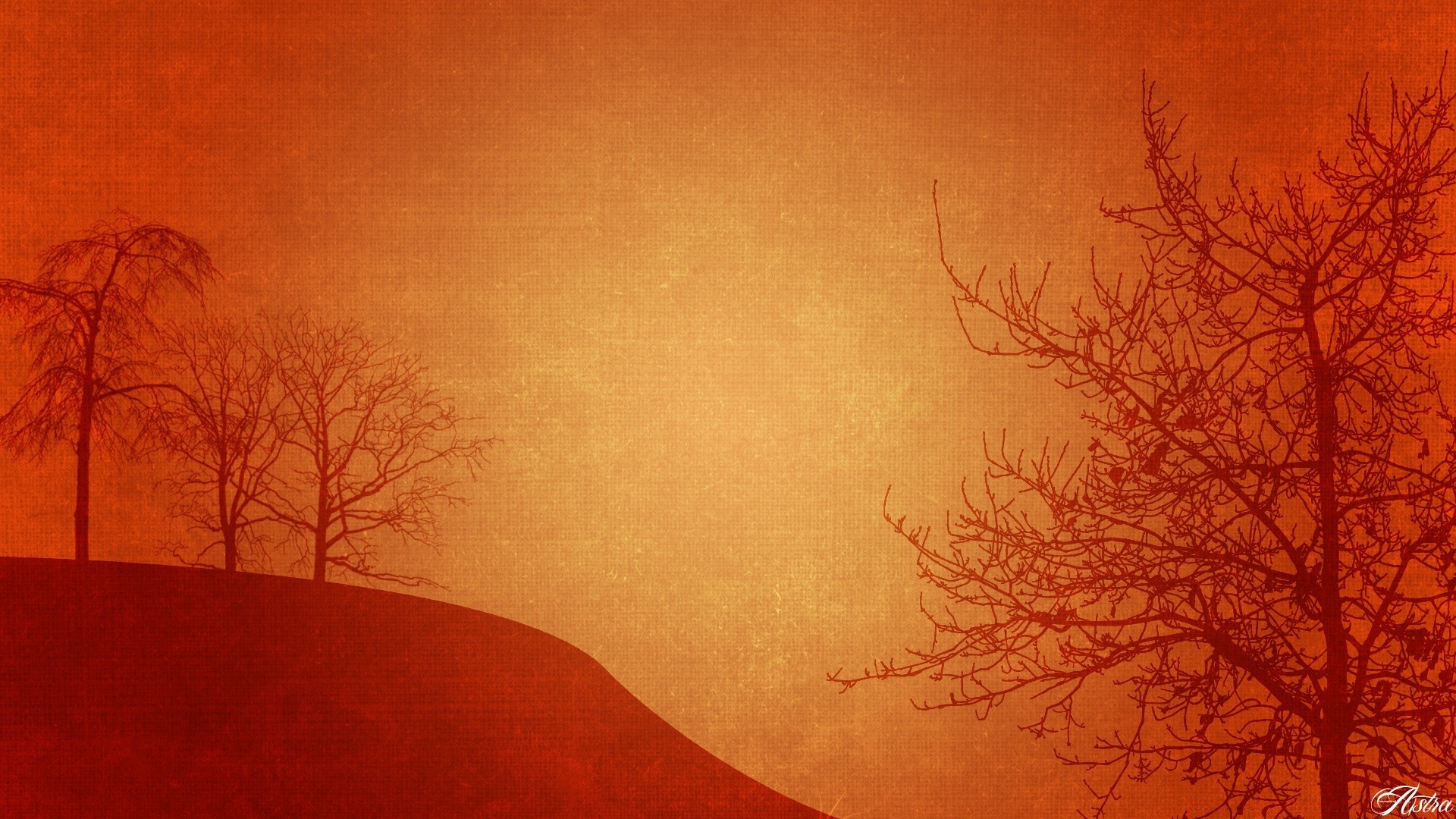 Paisaje. Vintage. Arbolado. Fondo naranja