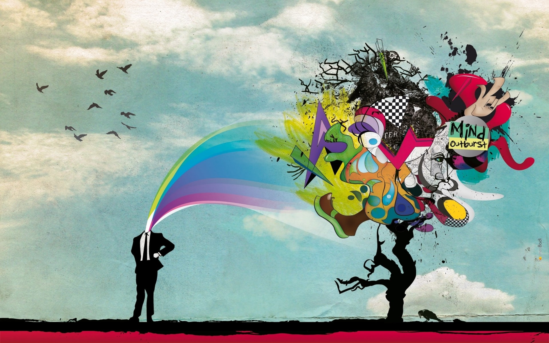 Un arco iris que fluye con muchos objetos del cuerpo de ya-hombre