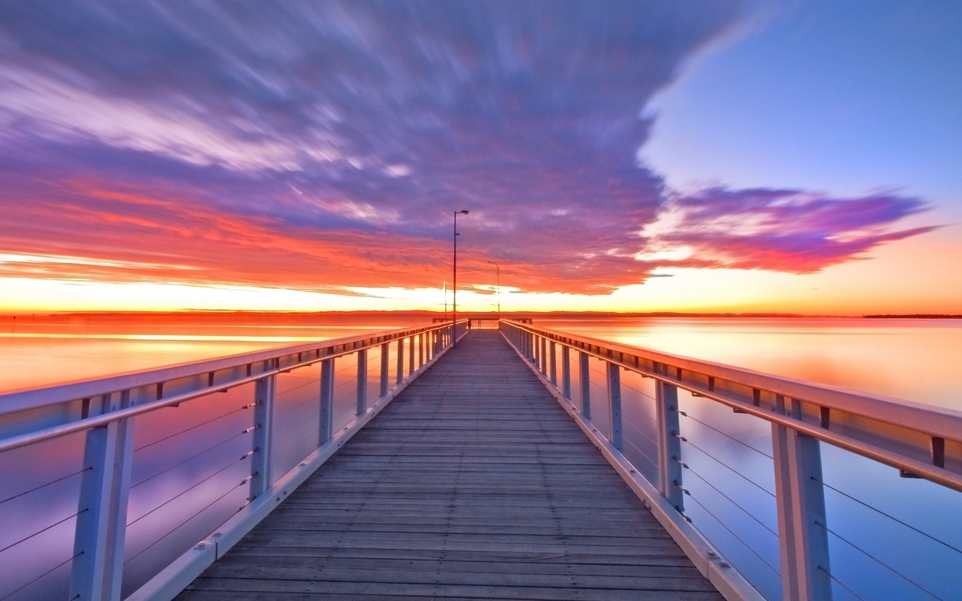 Hermoso amanecer en el muelle de la ciudad