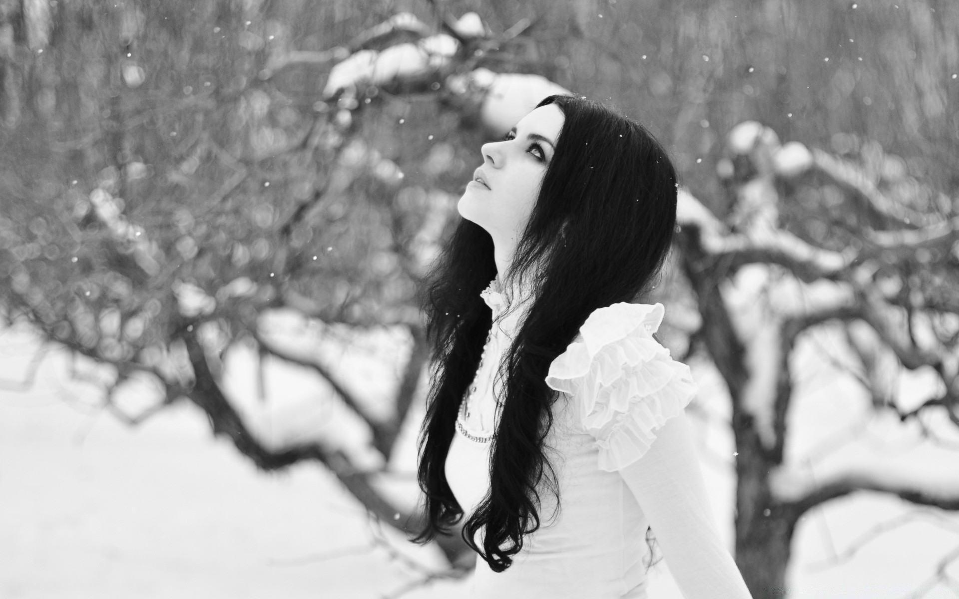 Retrato de una mujer en negro monocromo