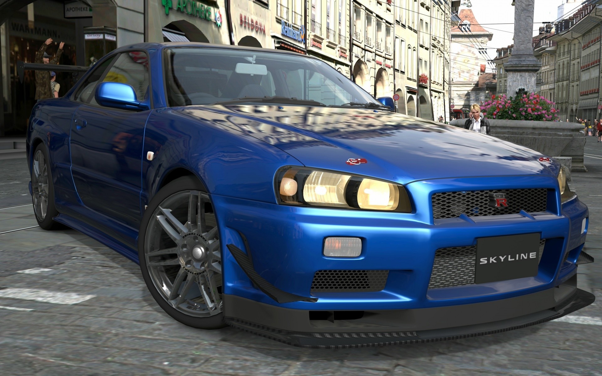 Coche azul en la Plaza de la ciudad