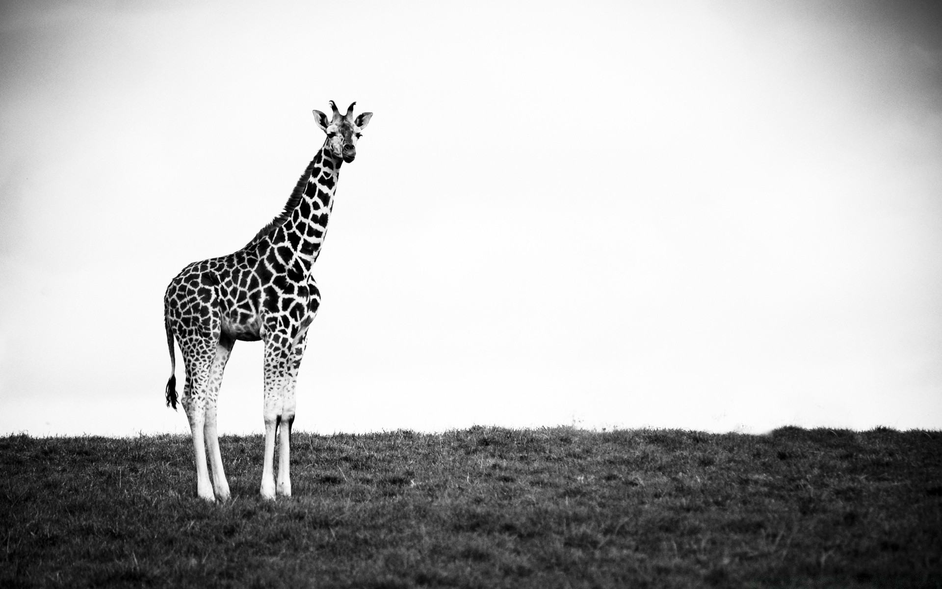 Jirafa en el mundo blanco y negro de los acontecimientos reales