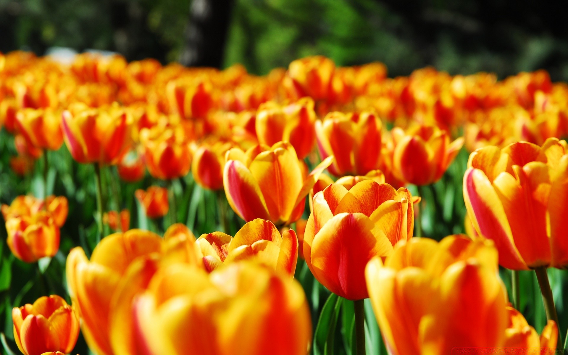 Gran campo de tulipanes naranjas