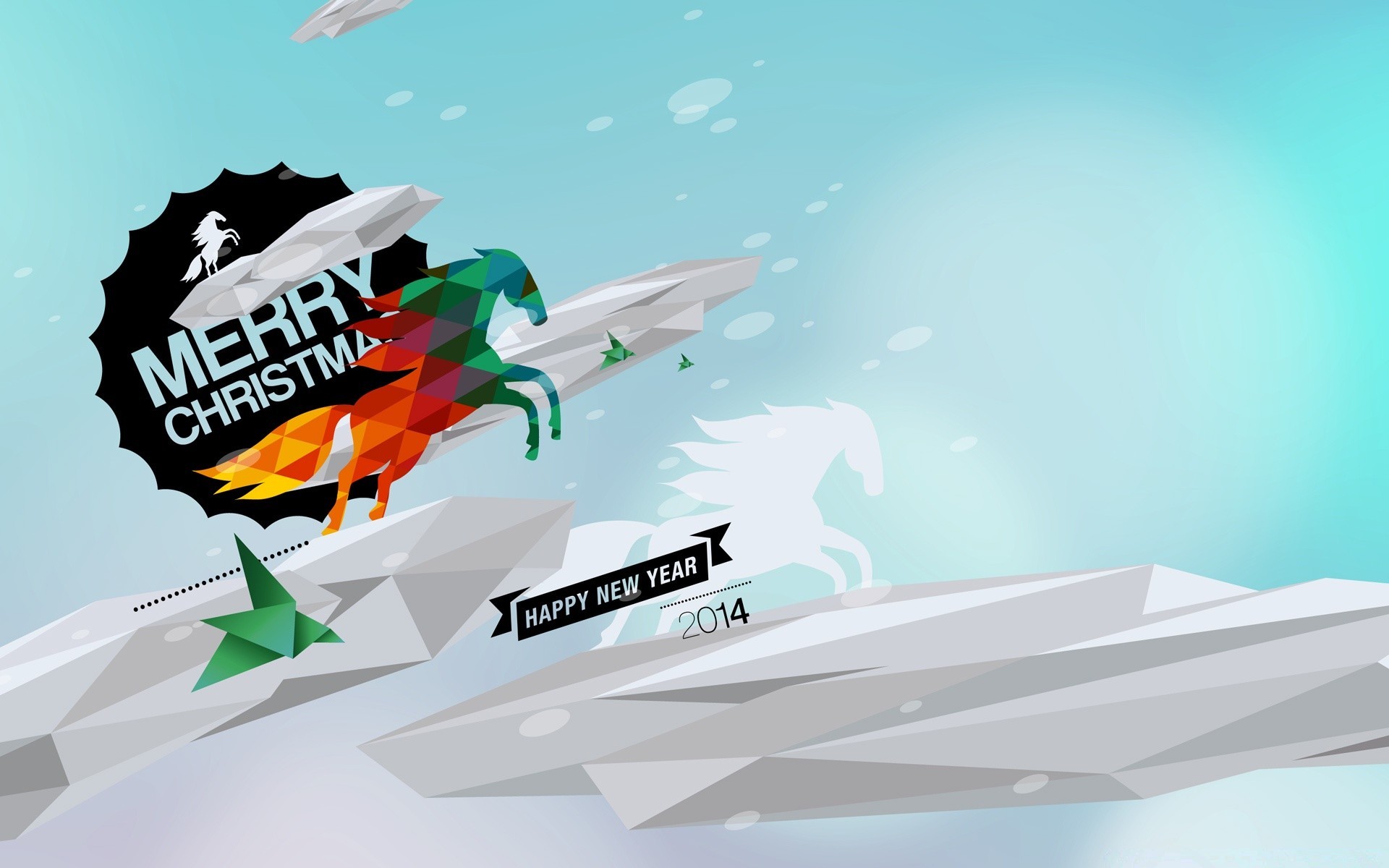 Feliz año nuevo y feliz Navidad. Caballos abstractos