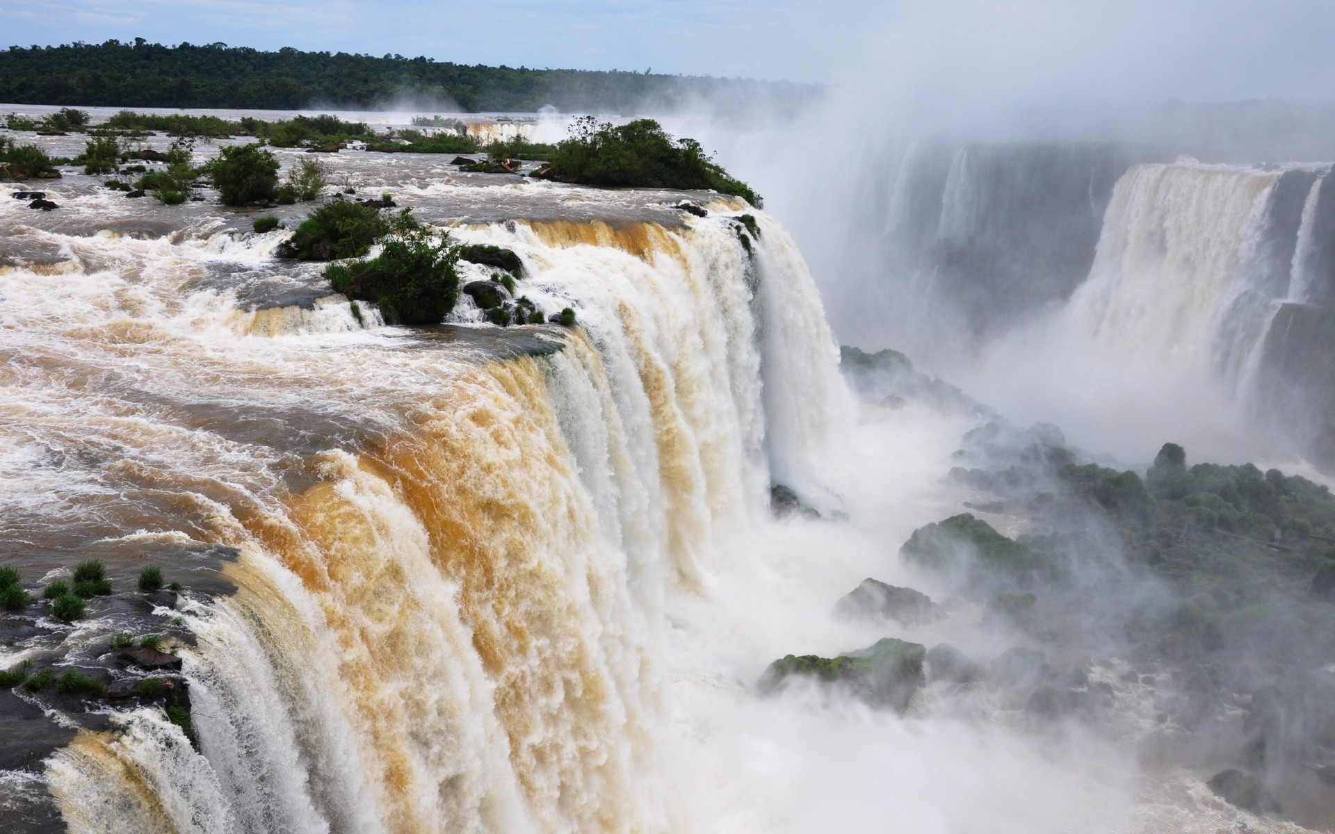 Paisaje de cascada alta en el fondo de un bosque salvaje