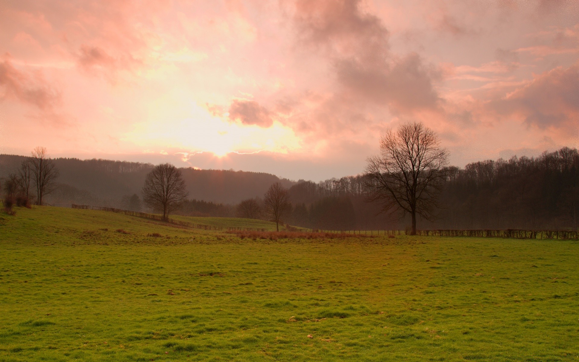 Árboles cubiertos de musgo en un bosque sombrío iluminado por el solÁrboles cubiertos de musgo en un bosque sombrío iluminado por el sol