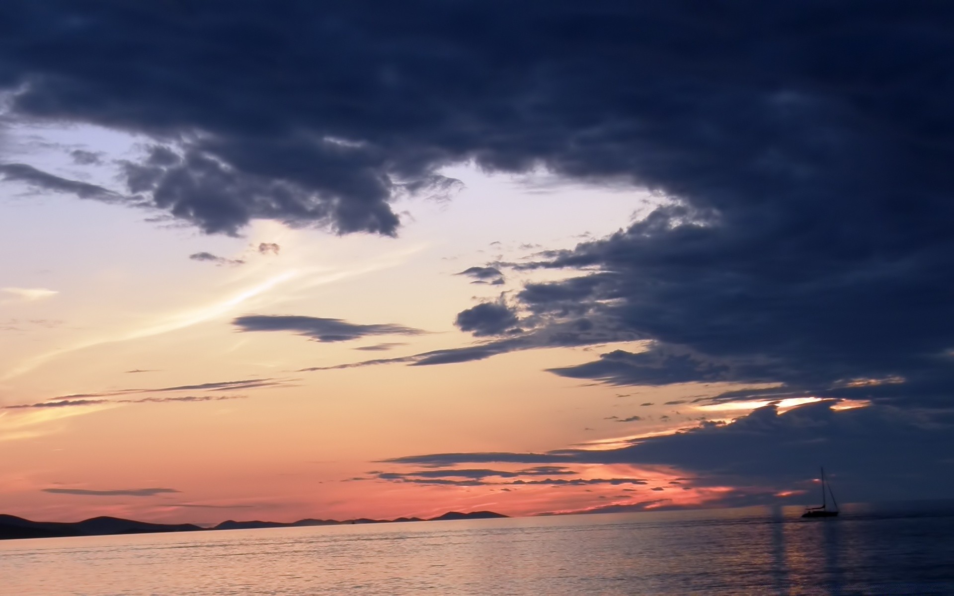 Puesta de sol sobre las montañas en el fondo del cielo nublado
