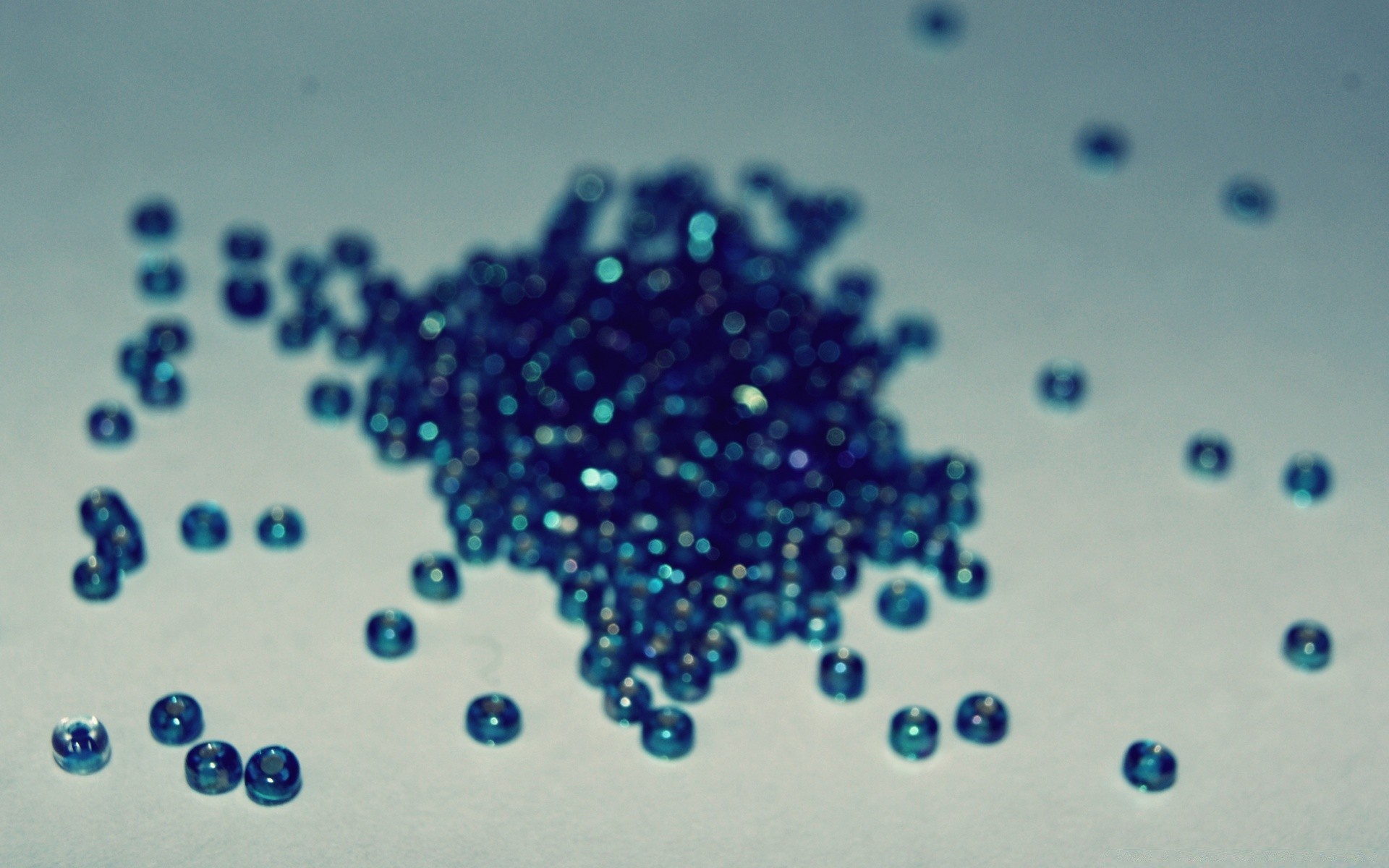 Dispersos en la superficie blanca de perlas azulesDispersos en la superficie blanca de perlas azules