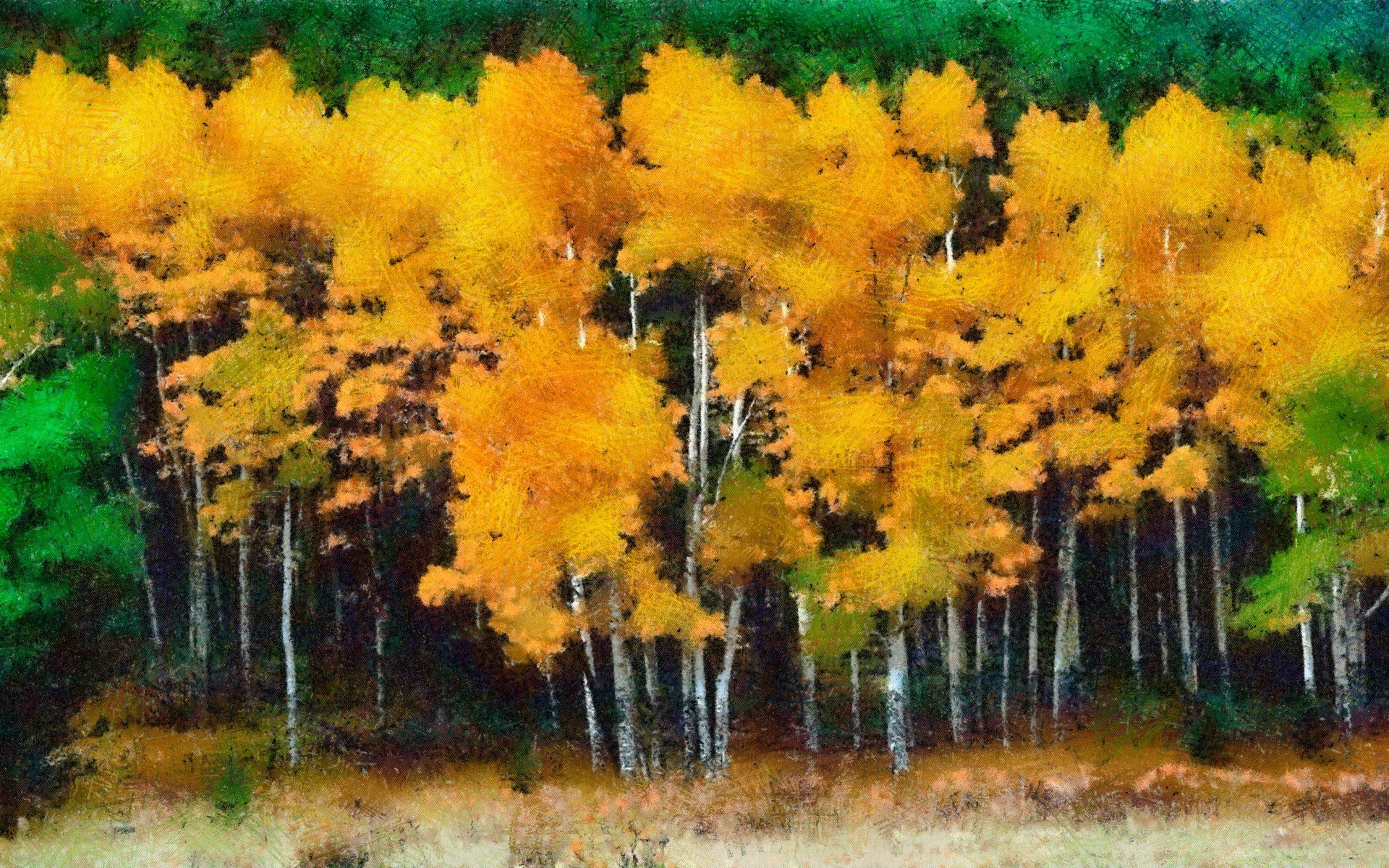Bosque de otoño. hojas amarillas en los árboles en otoñoBosque de otoño. Hojas amarillas en los árboles en otoño