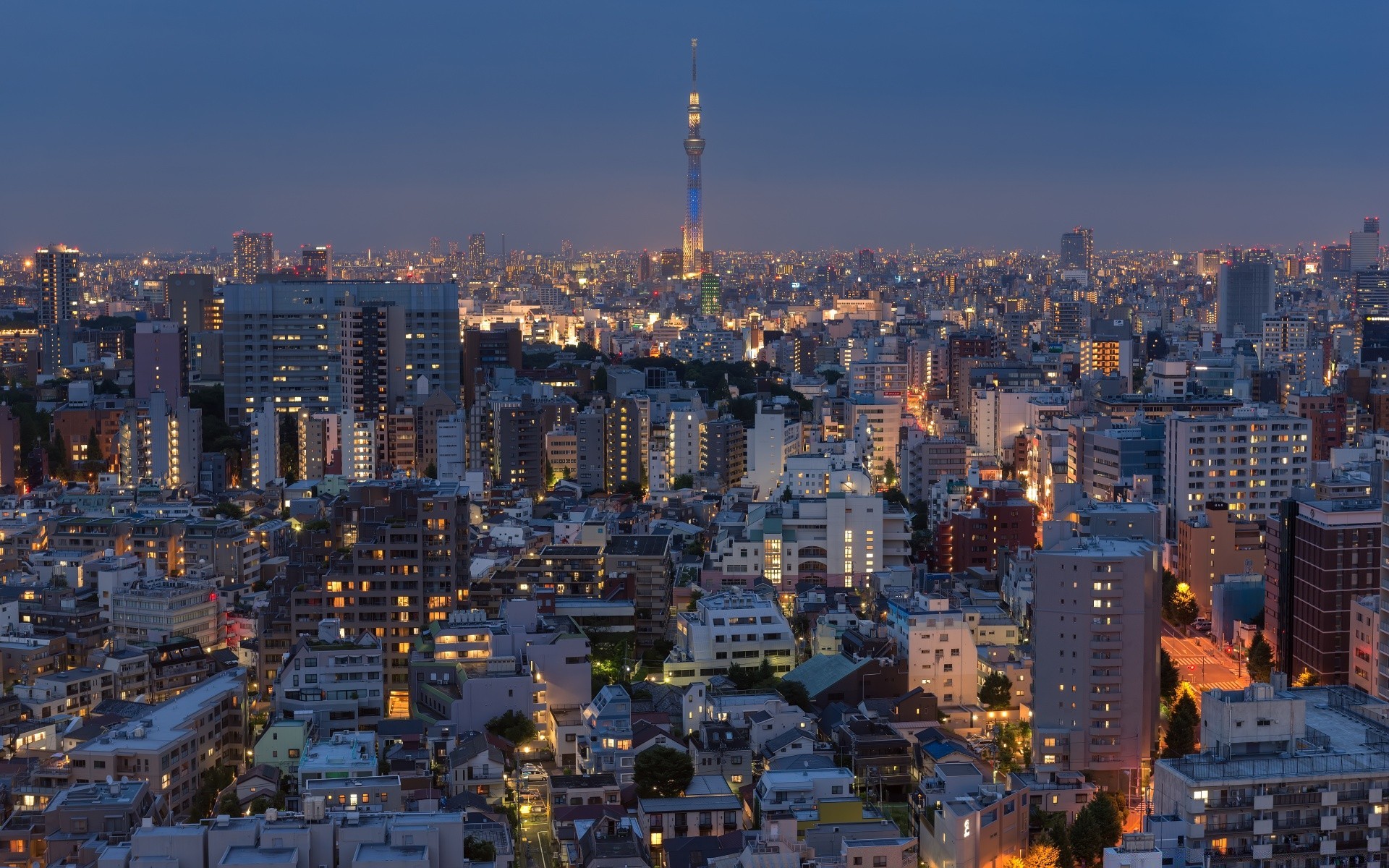 Una ciudad maravillosa en el fondo del cielo de la tarde