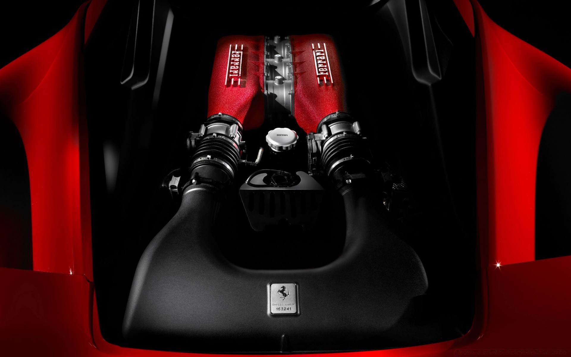 Foto de un hermoso coche rojo en el fondo del cielo al atardecer