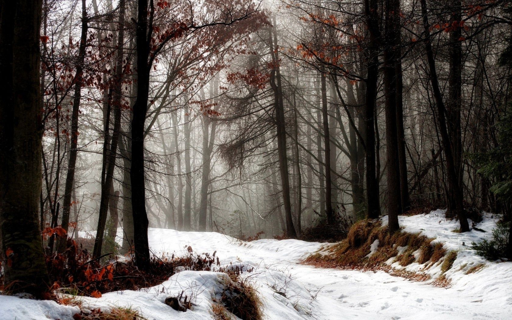 Hoscos bosque en la noche de invierno