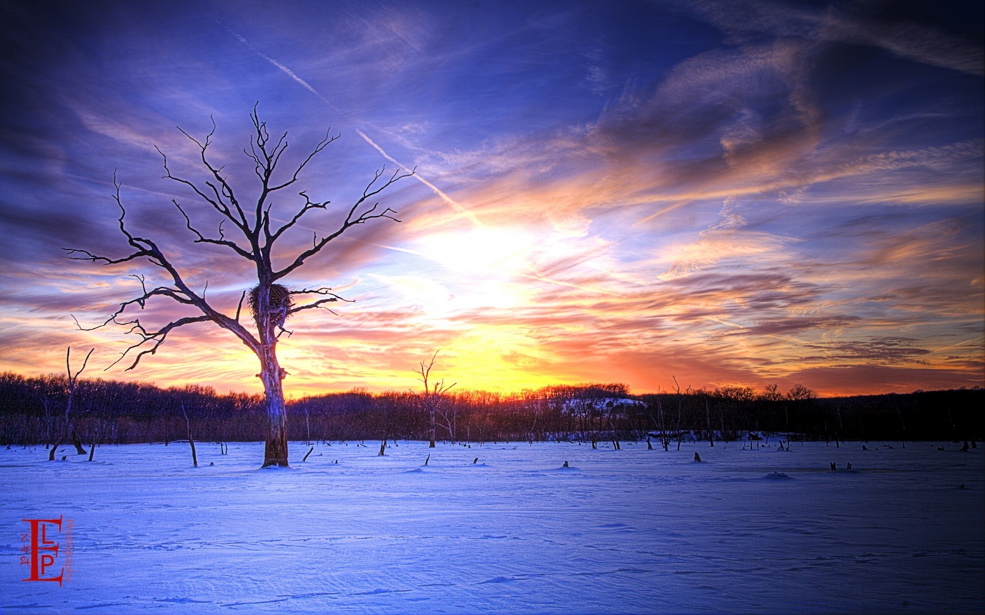 El sol de invierno brilla a través de las ramas desnudas