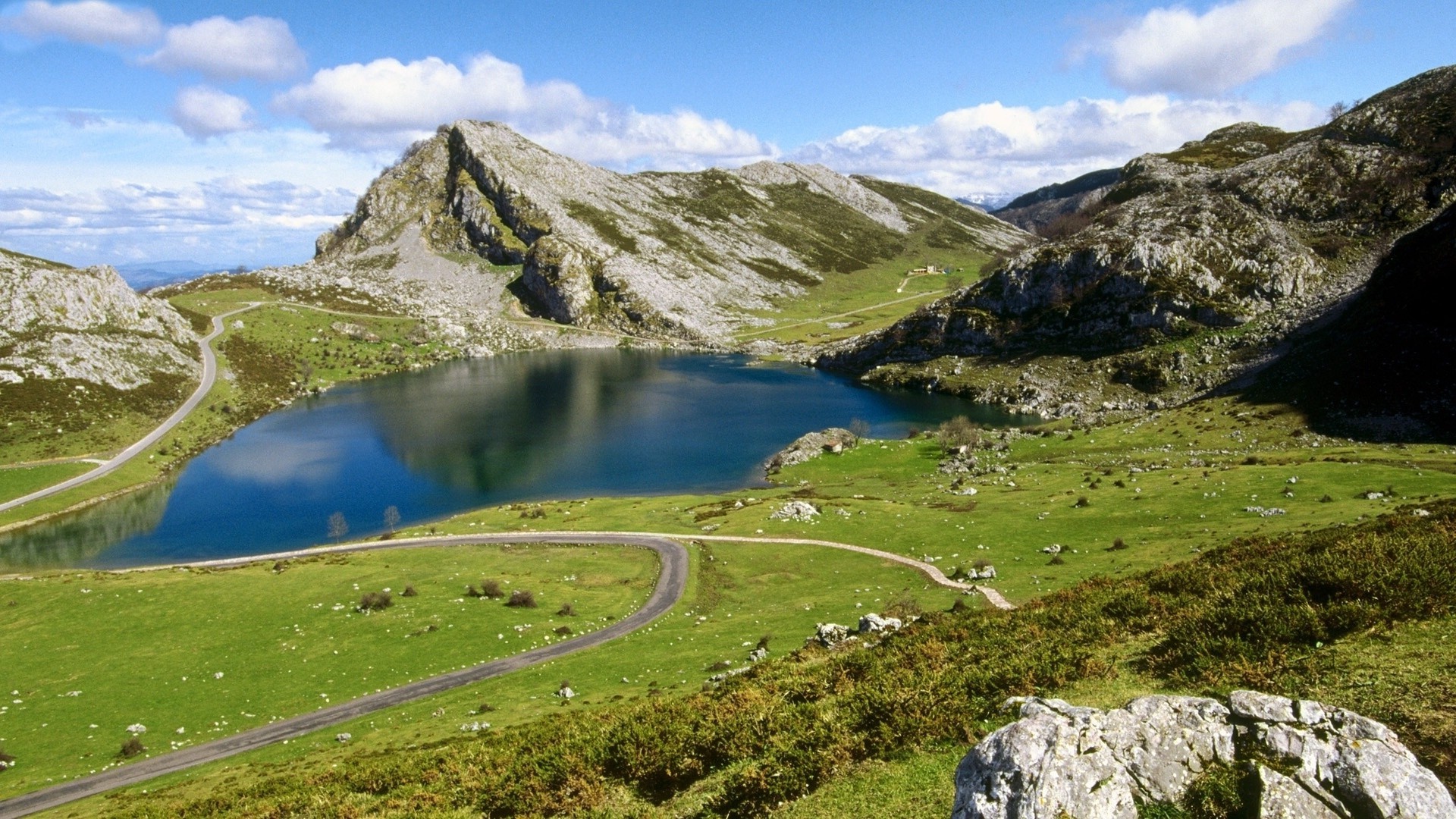 Paisaje de carretera de montaña y montañas cubiertas de nieve