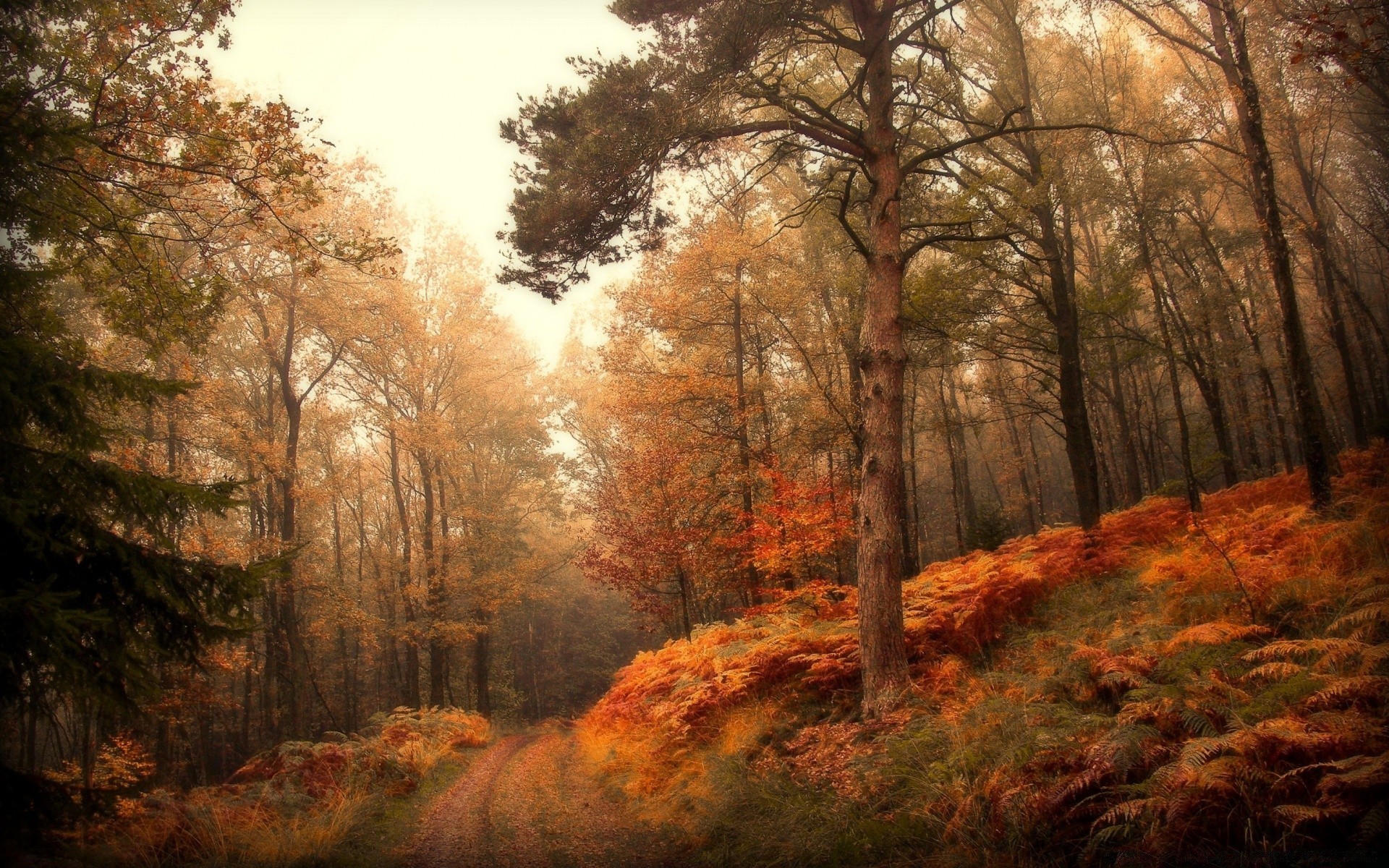 Paisaje de bosque de otoño en tiempo nublado