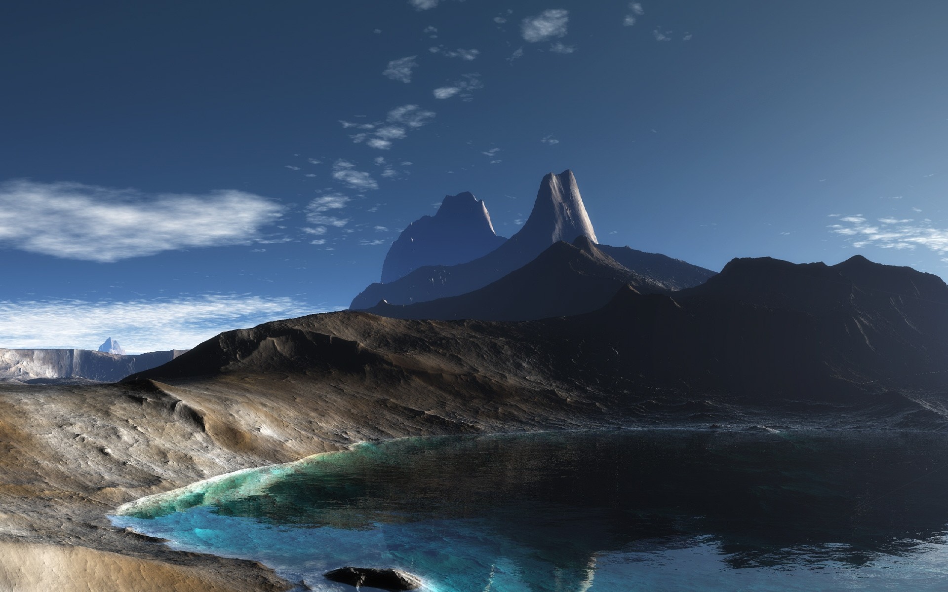 Imagen de una puesta de sol entre montañas y ríos