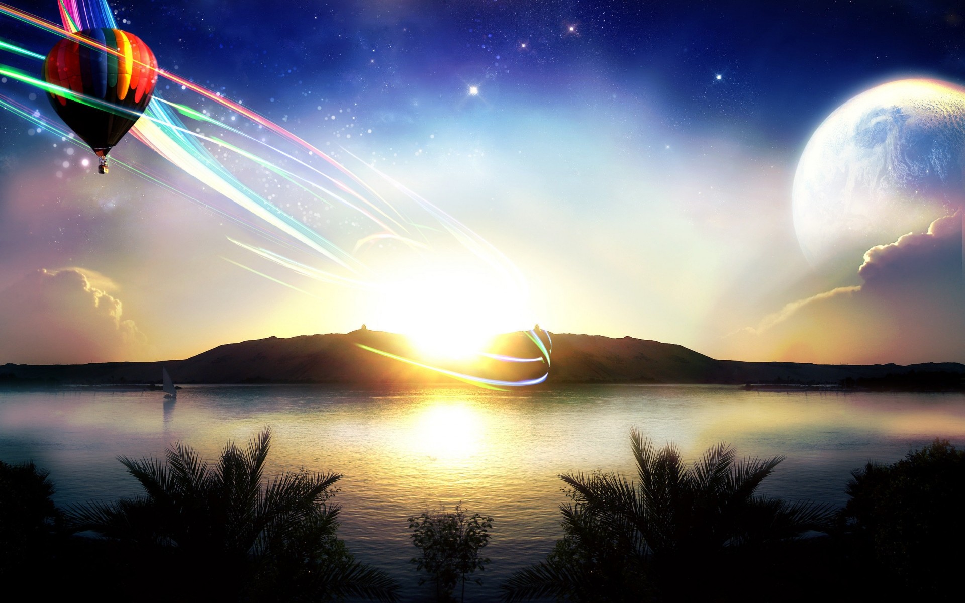 Paisaje fascinante lago al atardecer alrededor de la roca
