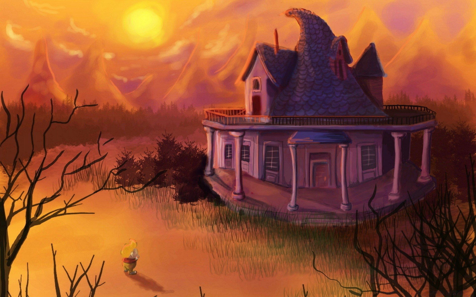 Casa de pan de jengibre en el fondo de las montañas naranjas