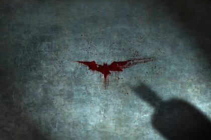 La silueta de batman sobre un fondo oscuro. signo rojoLa silueta de Batman sobre un fondo oscuro. Signo rojo