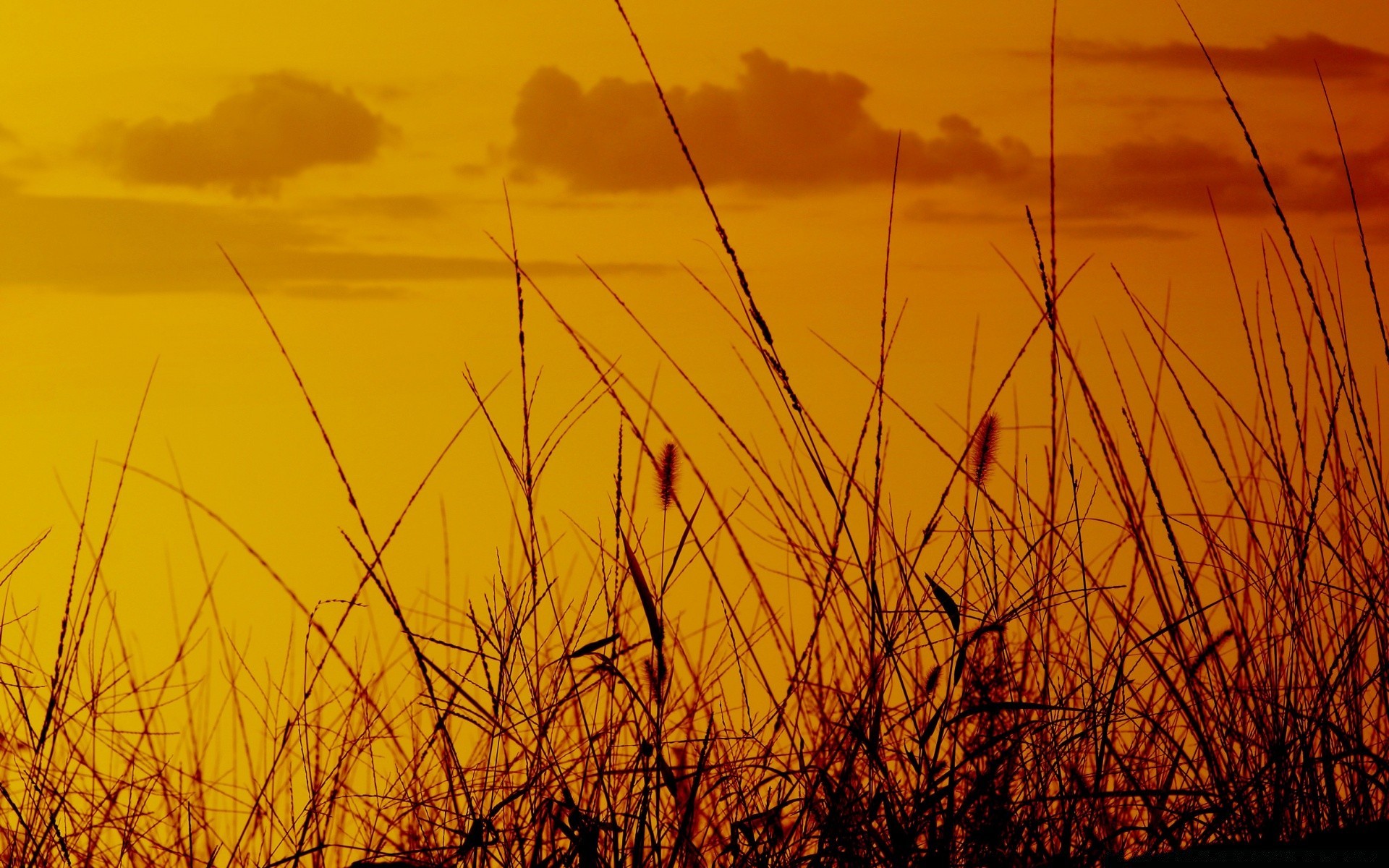 Hierba negra en el fondo de una puesta de sol carmesíHierba negra en el fondo de una puesta de sol carmesí