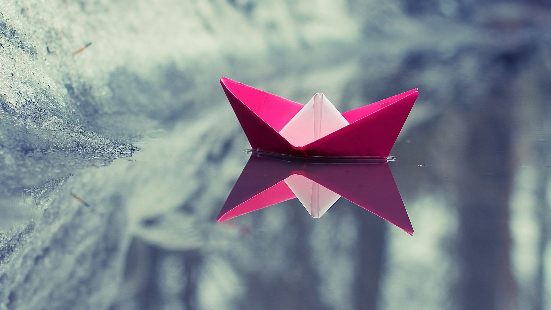 Barco de papel rosa en el agua