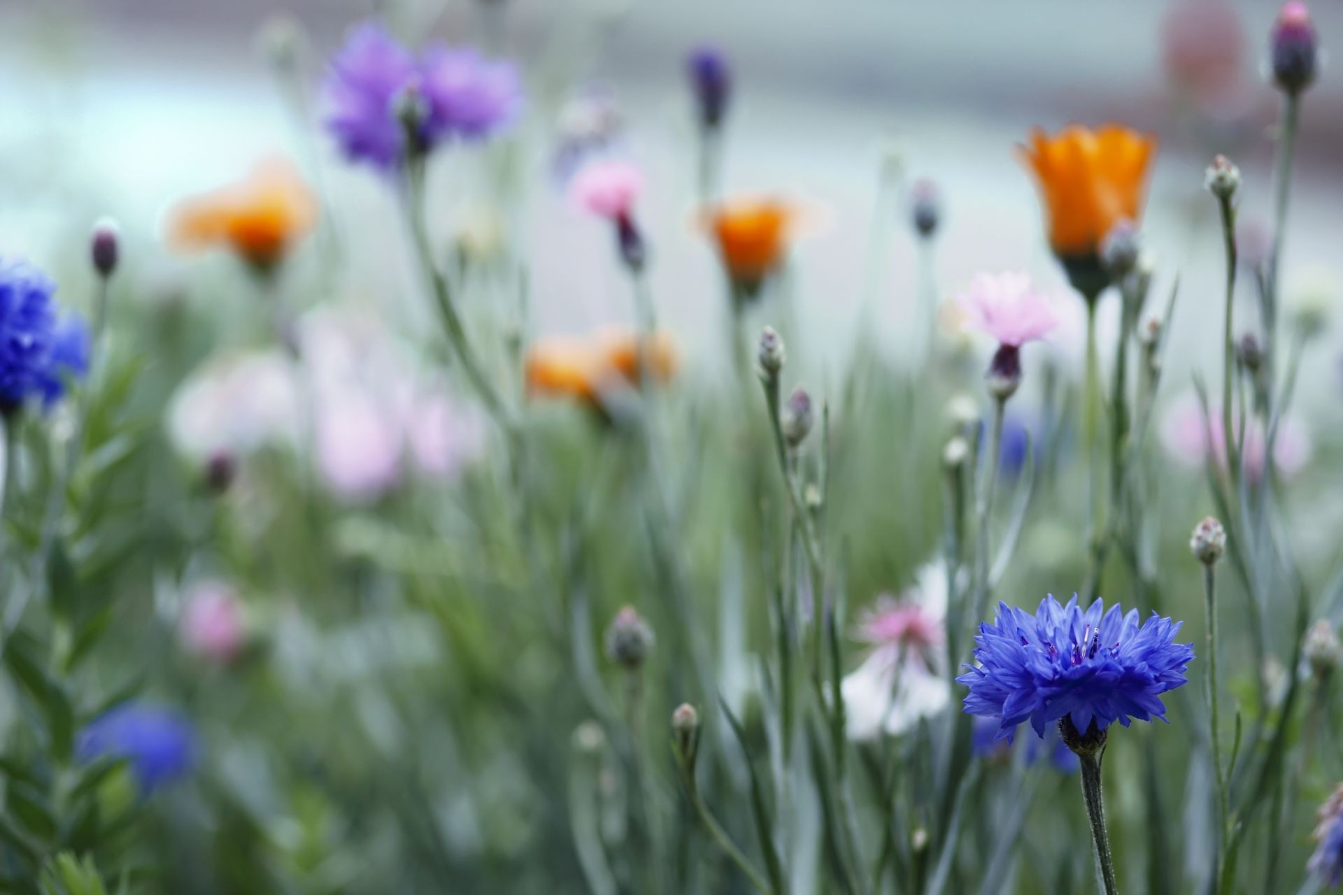 Flores multicolores en un campo multicolor