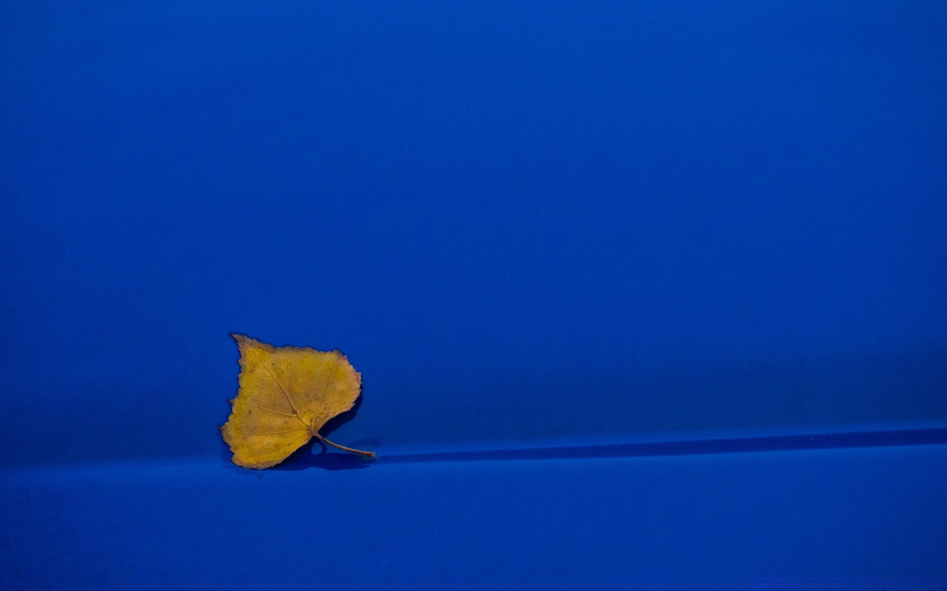 Papel pintado azul con hoja de otoño