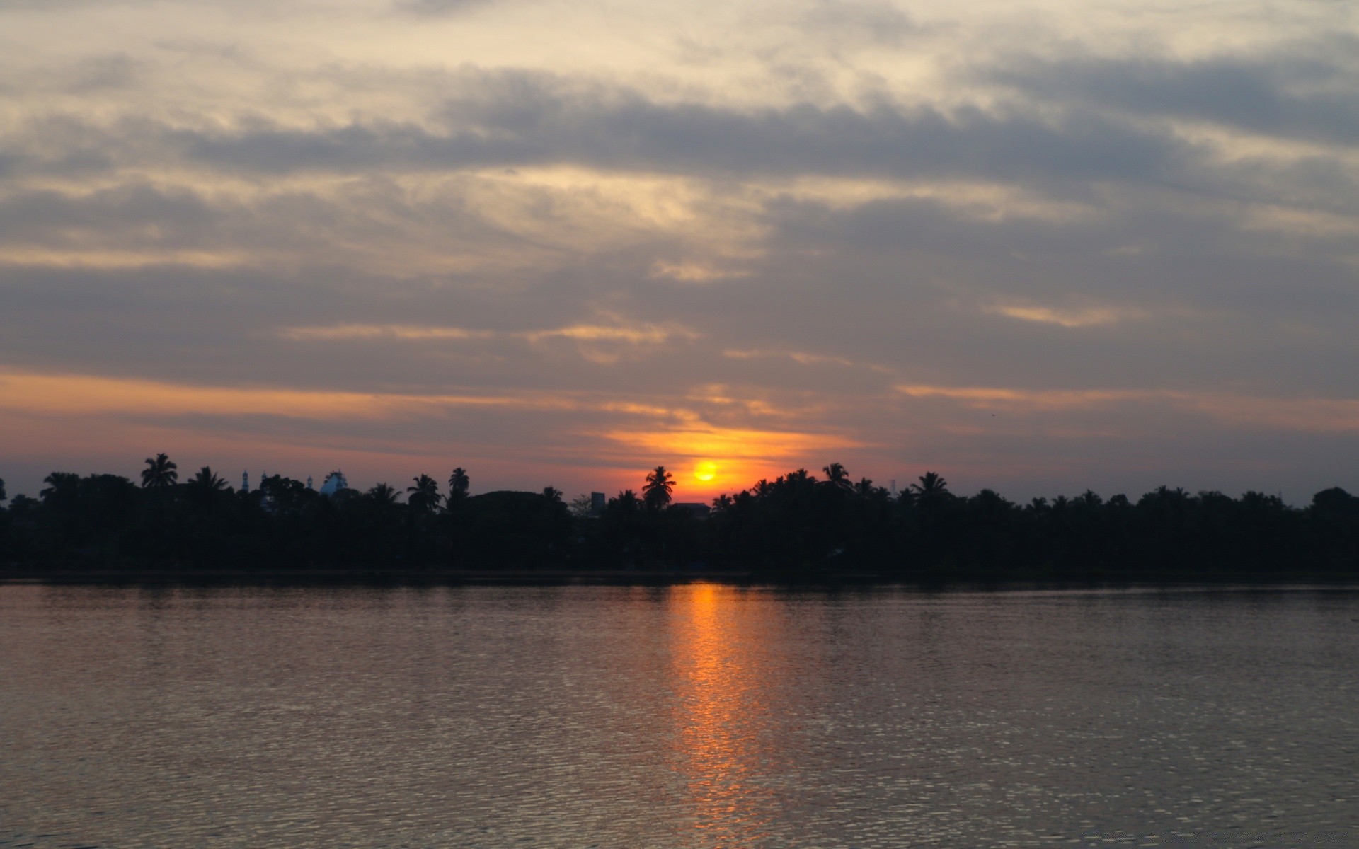 Sol sobre los árboles para sentarse, dejar un camino en el ríoSol sobre los árboles para sentarse, dejar un camino en el río