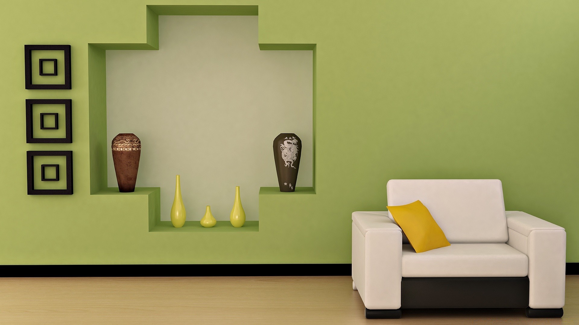 Excelente interior moderno de la habitación. Muebles mínimos, gran color