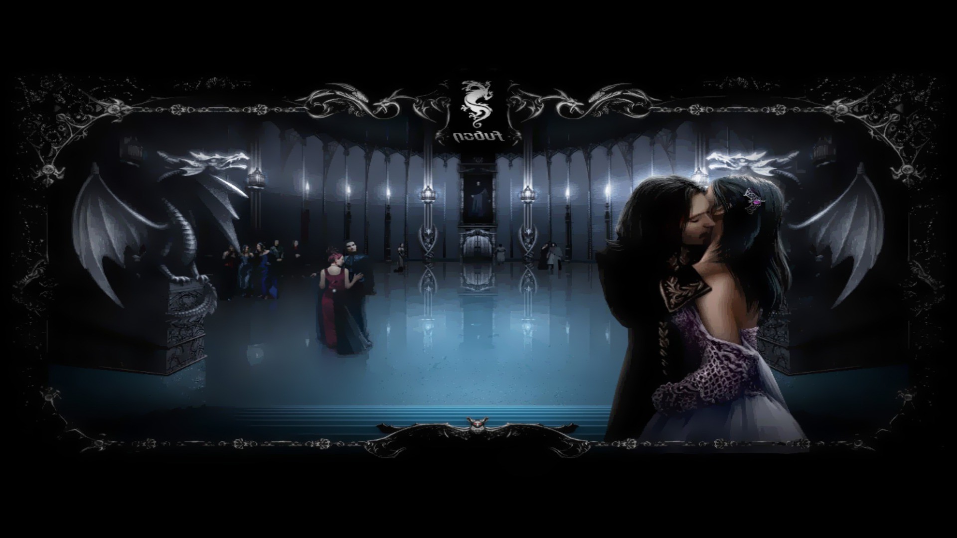 Pareja besándose en el fondo de la estatua del dragónPareja besándose en el fondo de la estatua del dragón
