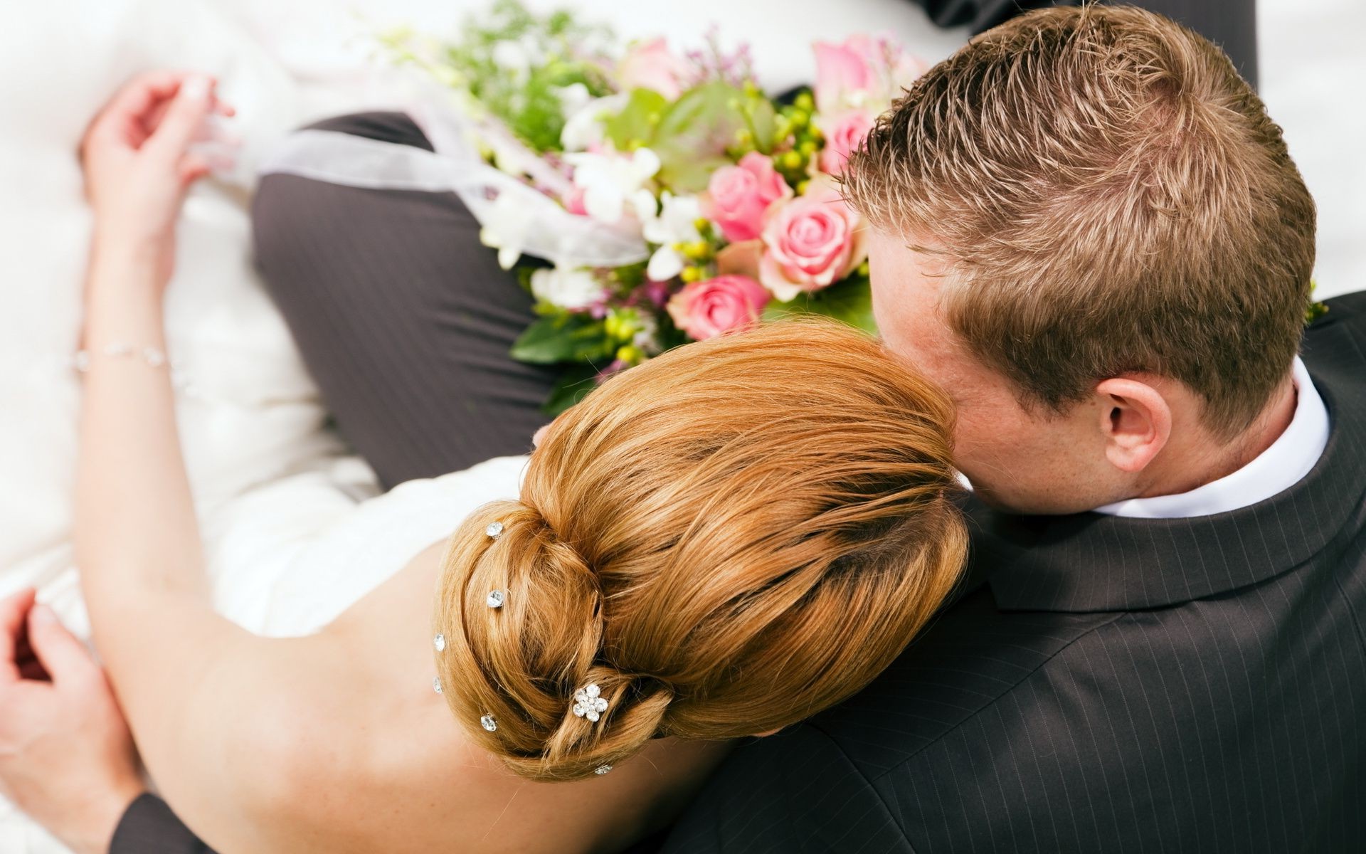 Pareja besándose en el fondo de la puesta de sol junto al mar