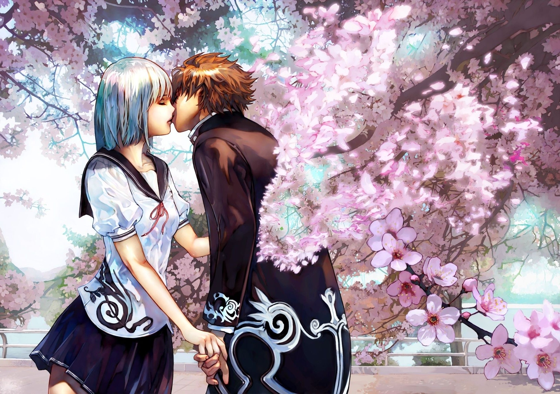 Cherry kiss floreciente Sakura beso pareja amantes