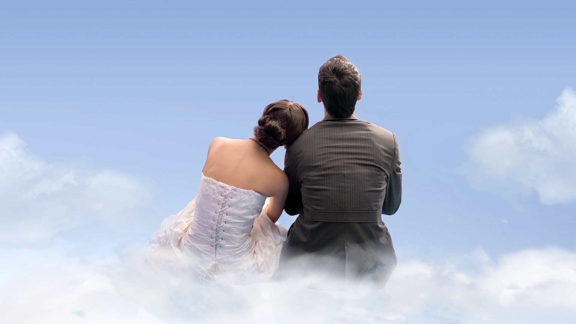 Pareja enamorada en la orilla del mar en medio de la puesta de sol