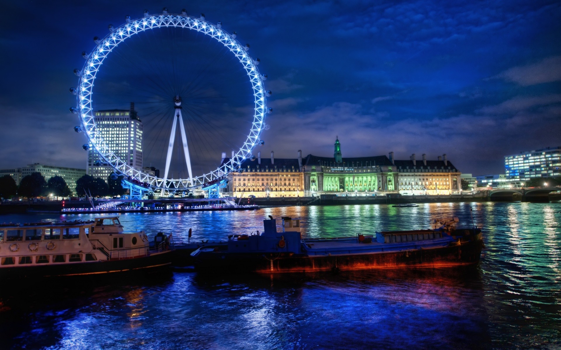 Puente sobre el río que conecta partes de la ciudad de la noche en las luces en el fondo de la montaña en la niebla blanca