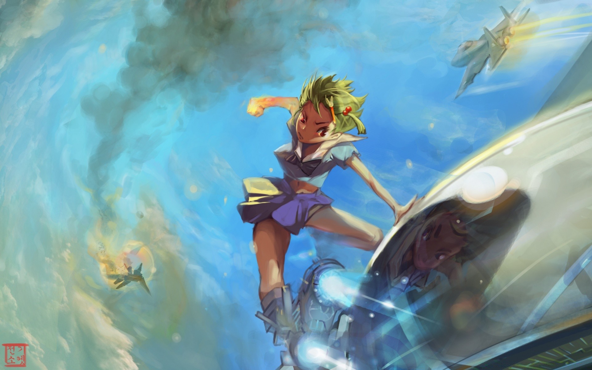 Chica japonesa volando sobre una ballena