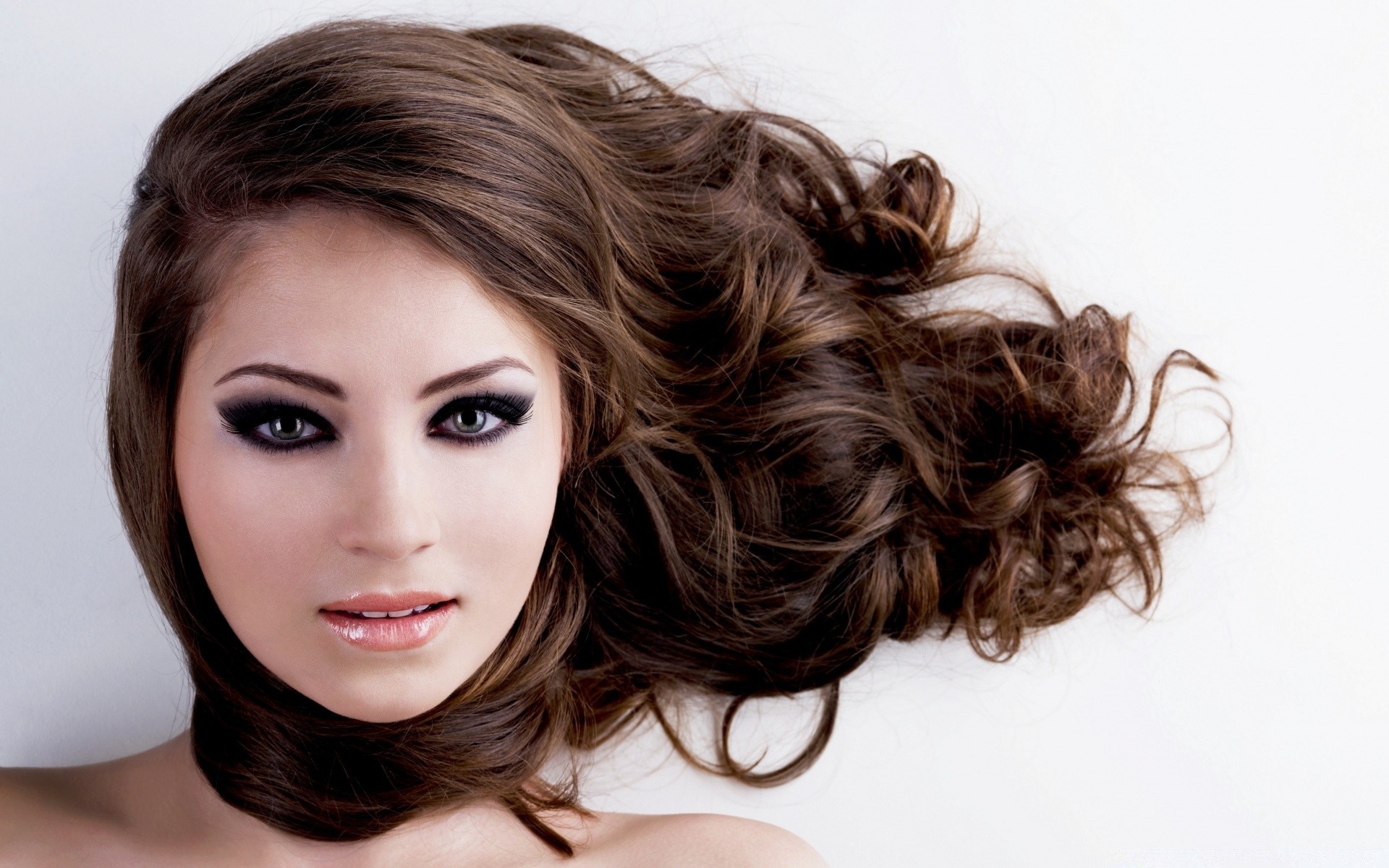 Retrato de una hermosa chica con el pelo rizado exuberante