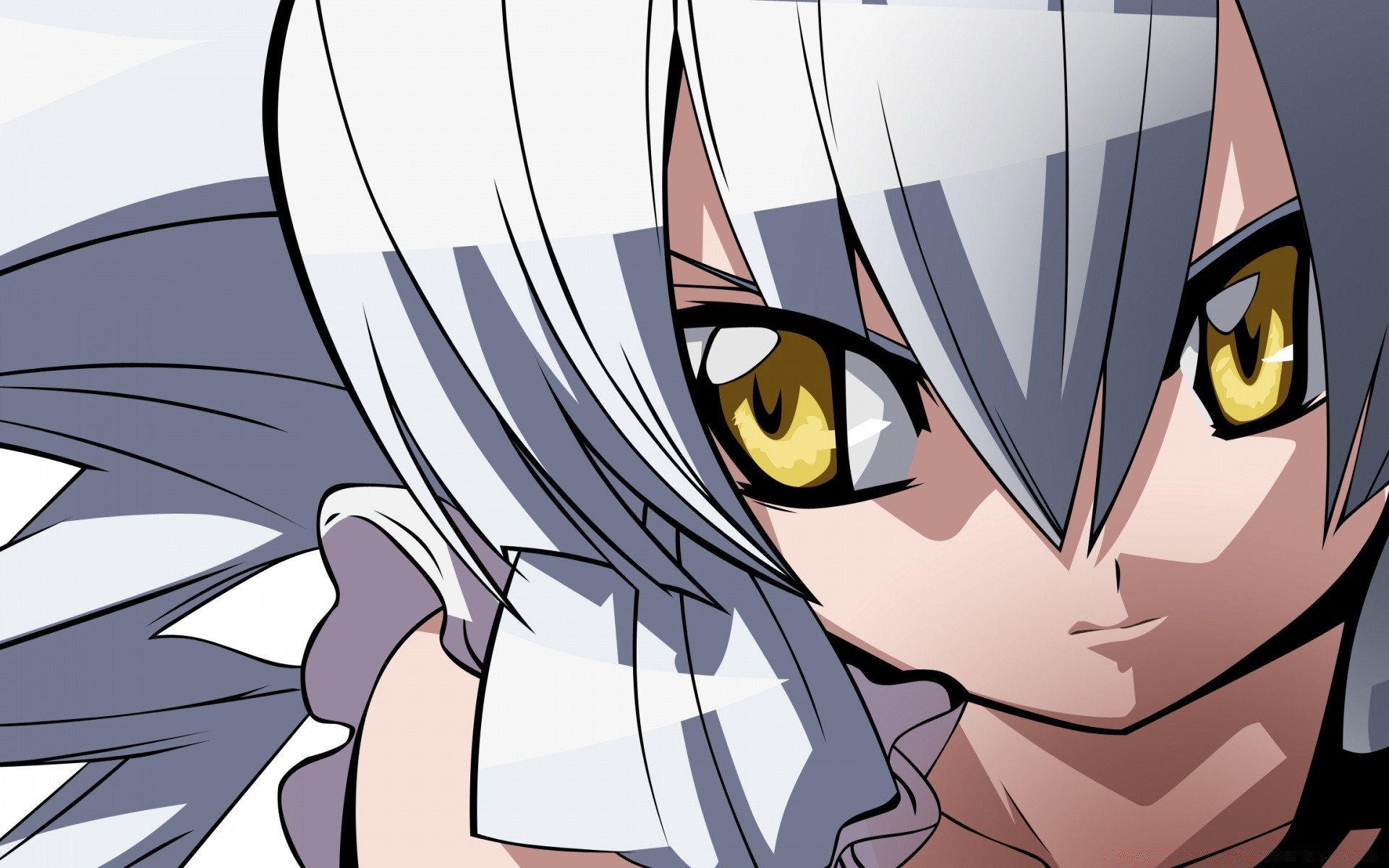 Cara de chica anime con el pelo blanco y ojos amarillos primer planoCara de chica anime con el pelo blanco y ojos amarillos primer plano