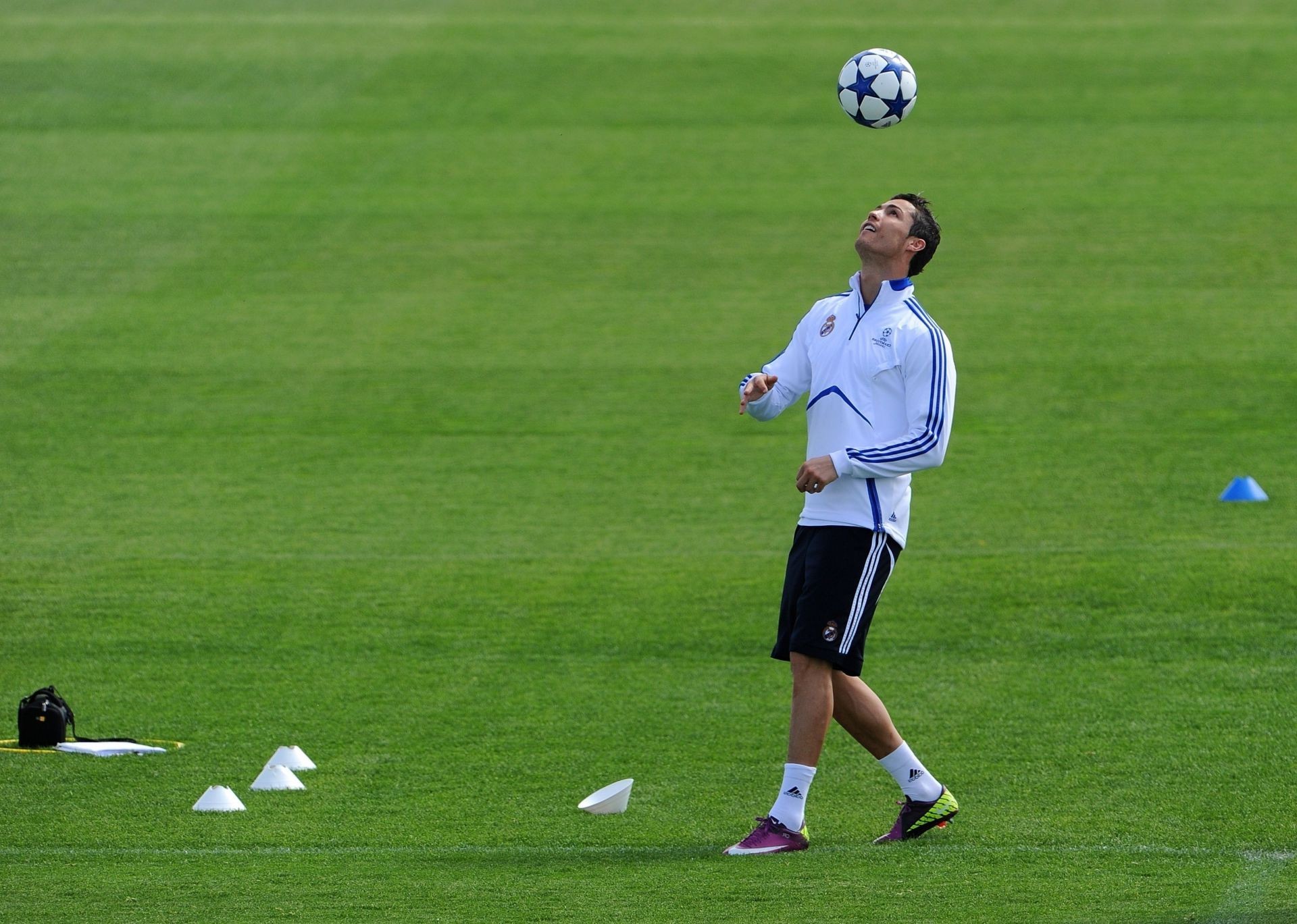 Los balones de fútbol se encuentran en un campo deportivo verde