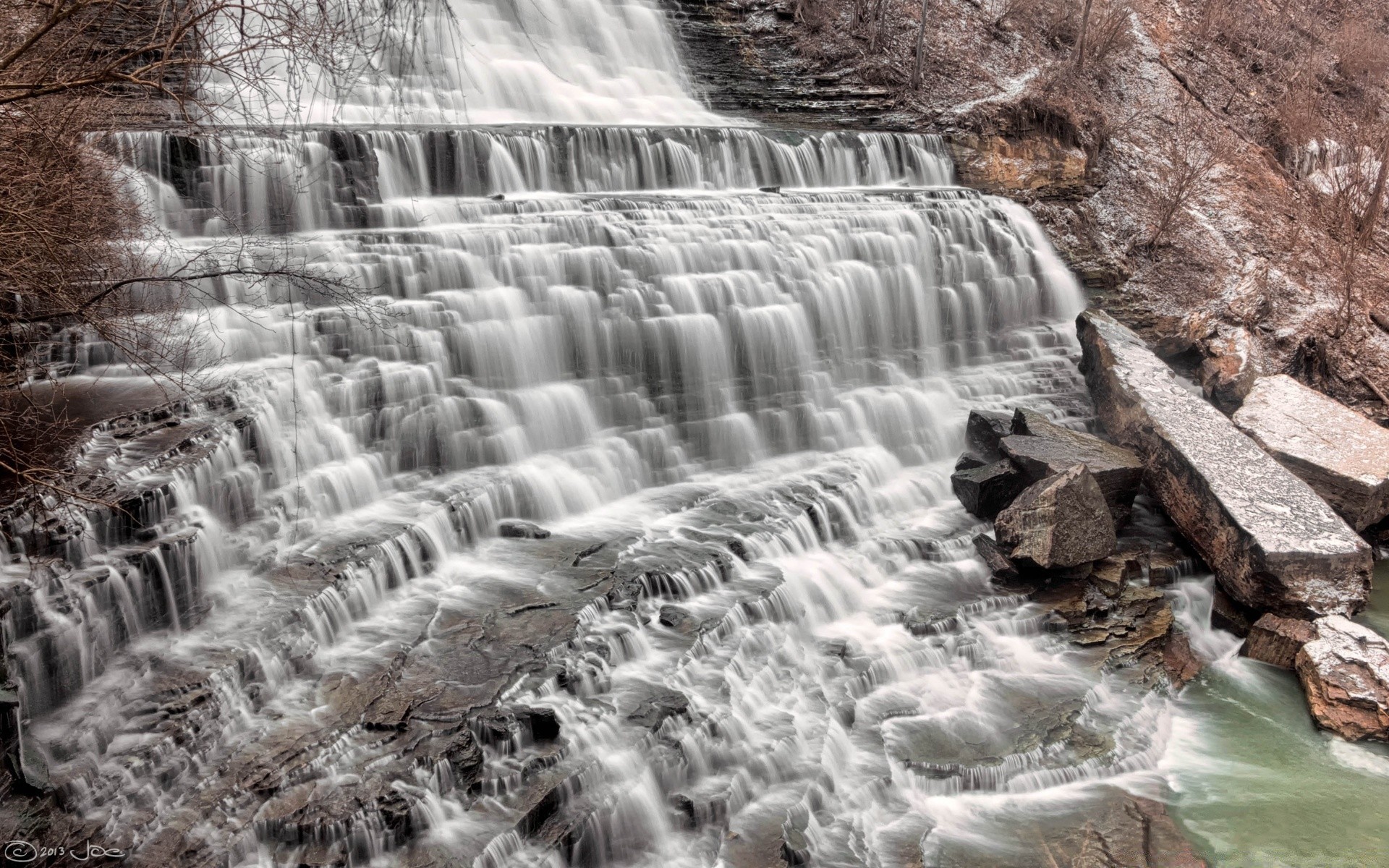 Robot hecho de cajas de cartón entre grandes rocas con musgo