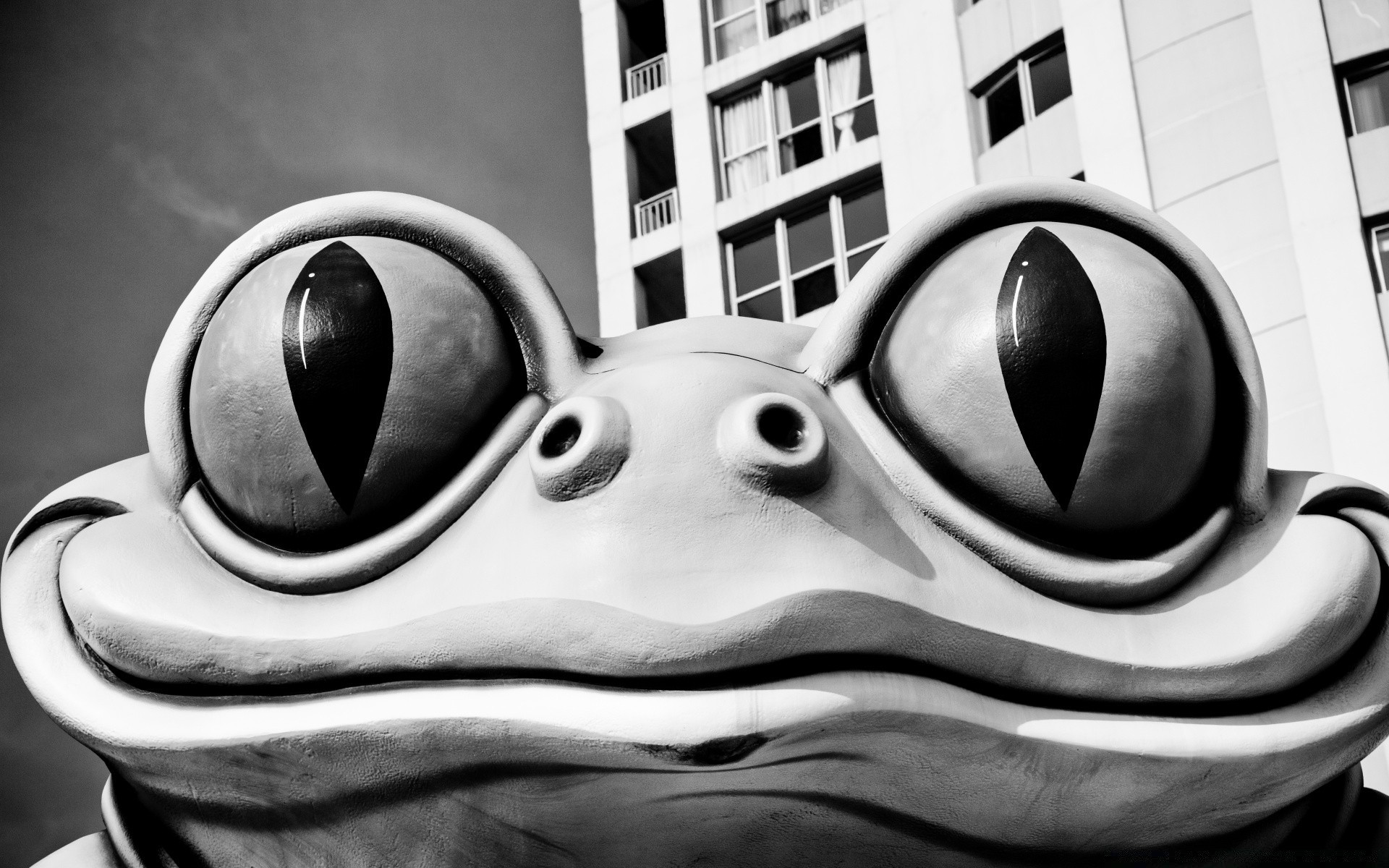 Sapo de piedra frente a un edificio de apartamentosSapo de piedra frente a un edificio de apartamentos
