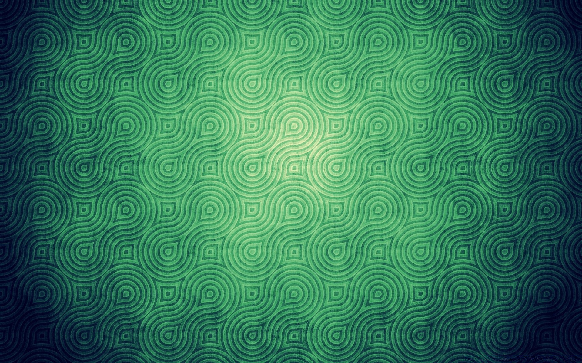 La abstracción derribó círculos verdes con un centro naranja sobre un fondo azul
