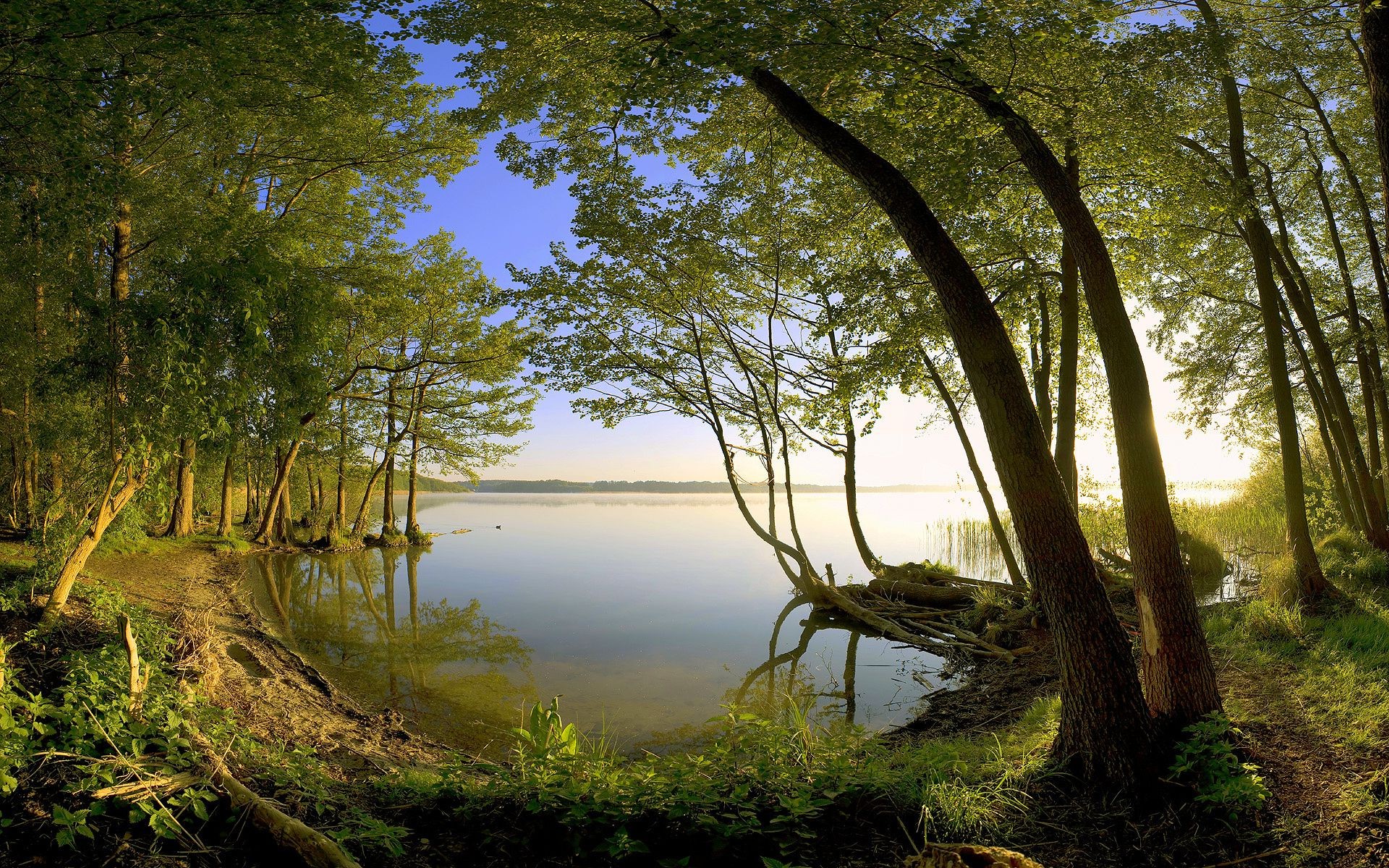 Naturaleza. Montañas verdes y una cascada contra el cielo azul