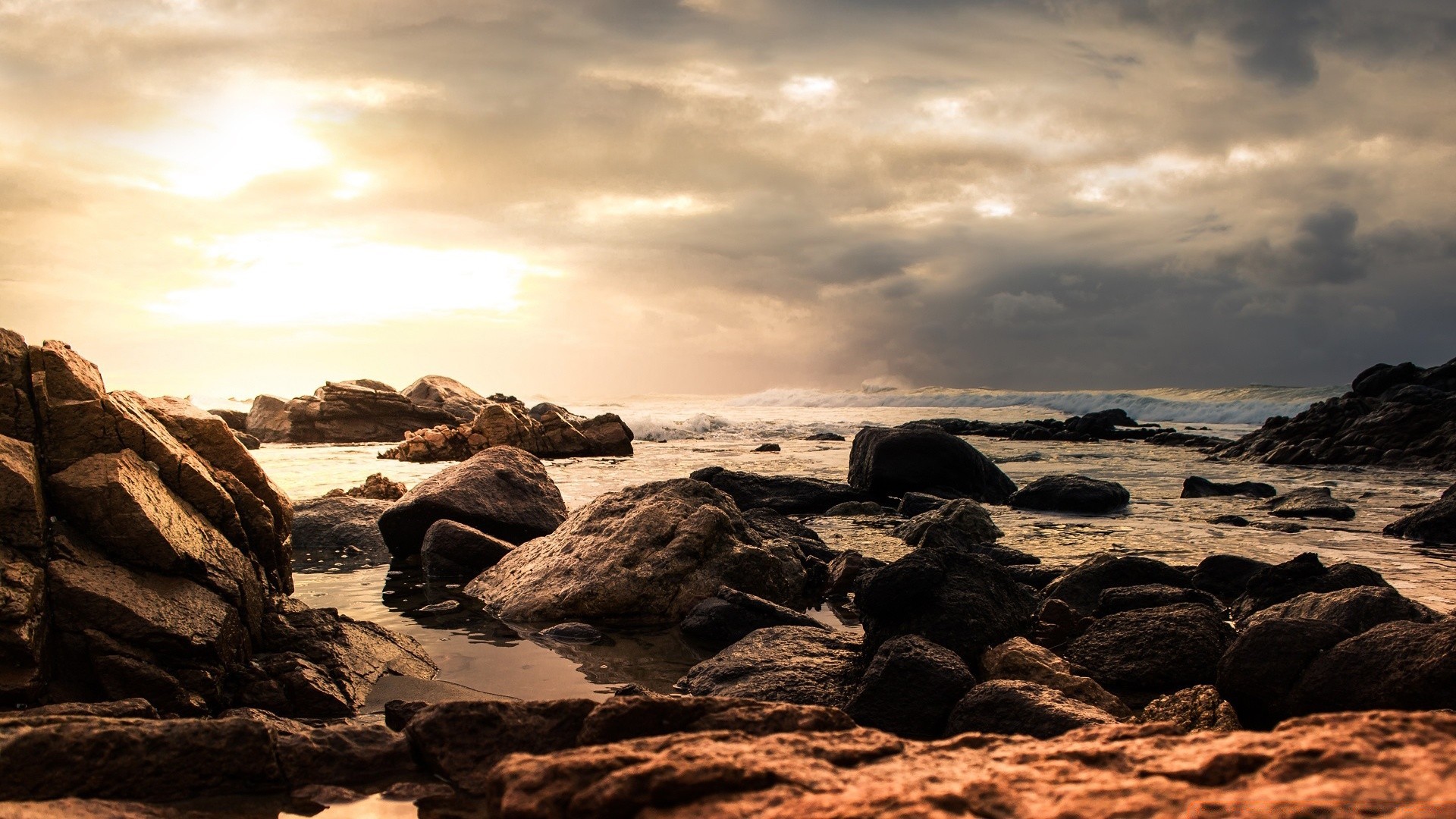 El coche de plata se encuentra en el fondo de las montañas y las piedras