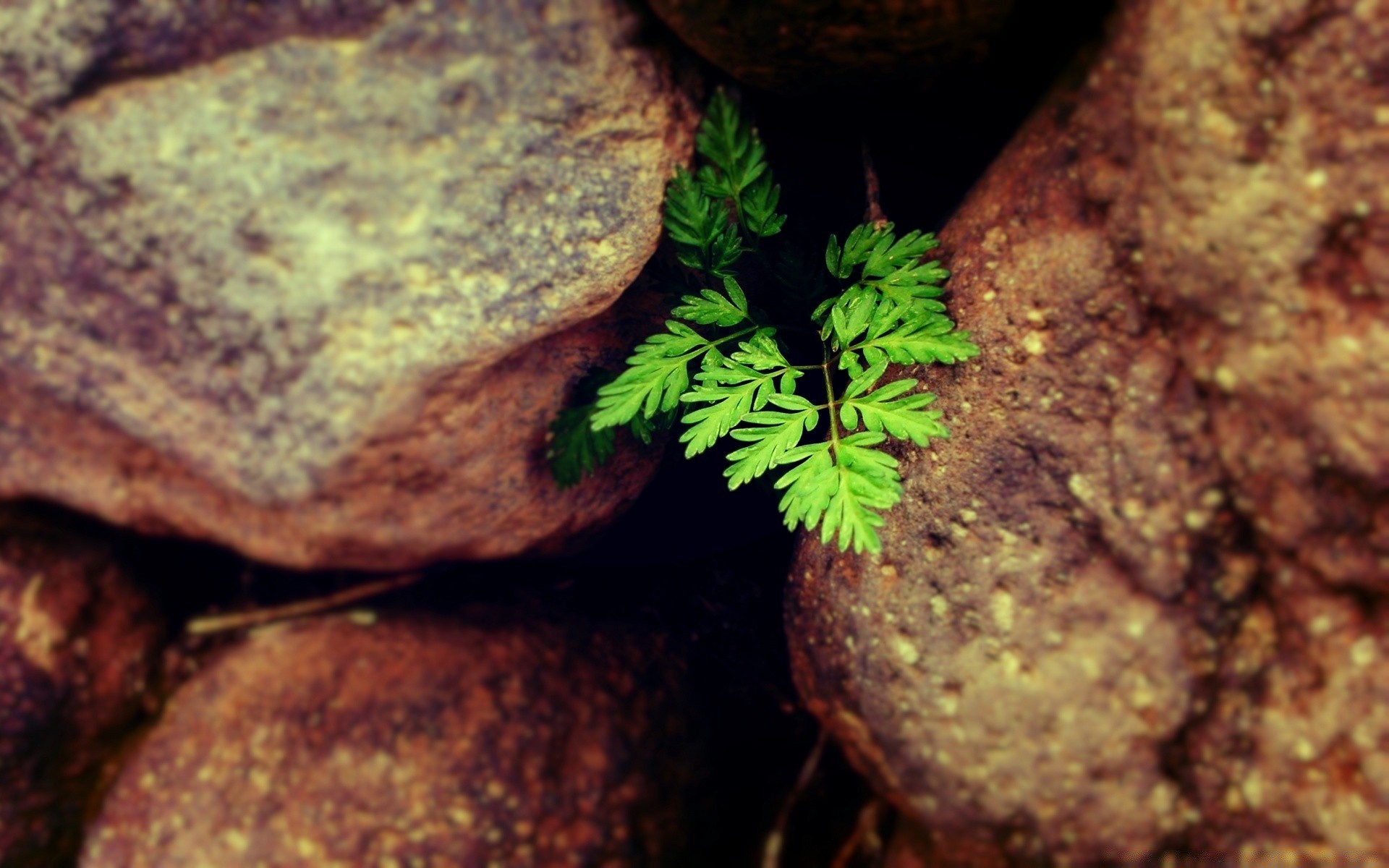 Una rama verde de la planta se abre paso a través de las piedrasUna rama verde de la planta se abre paso a través de las piedras