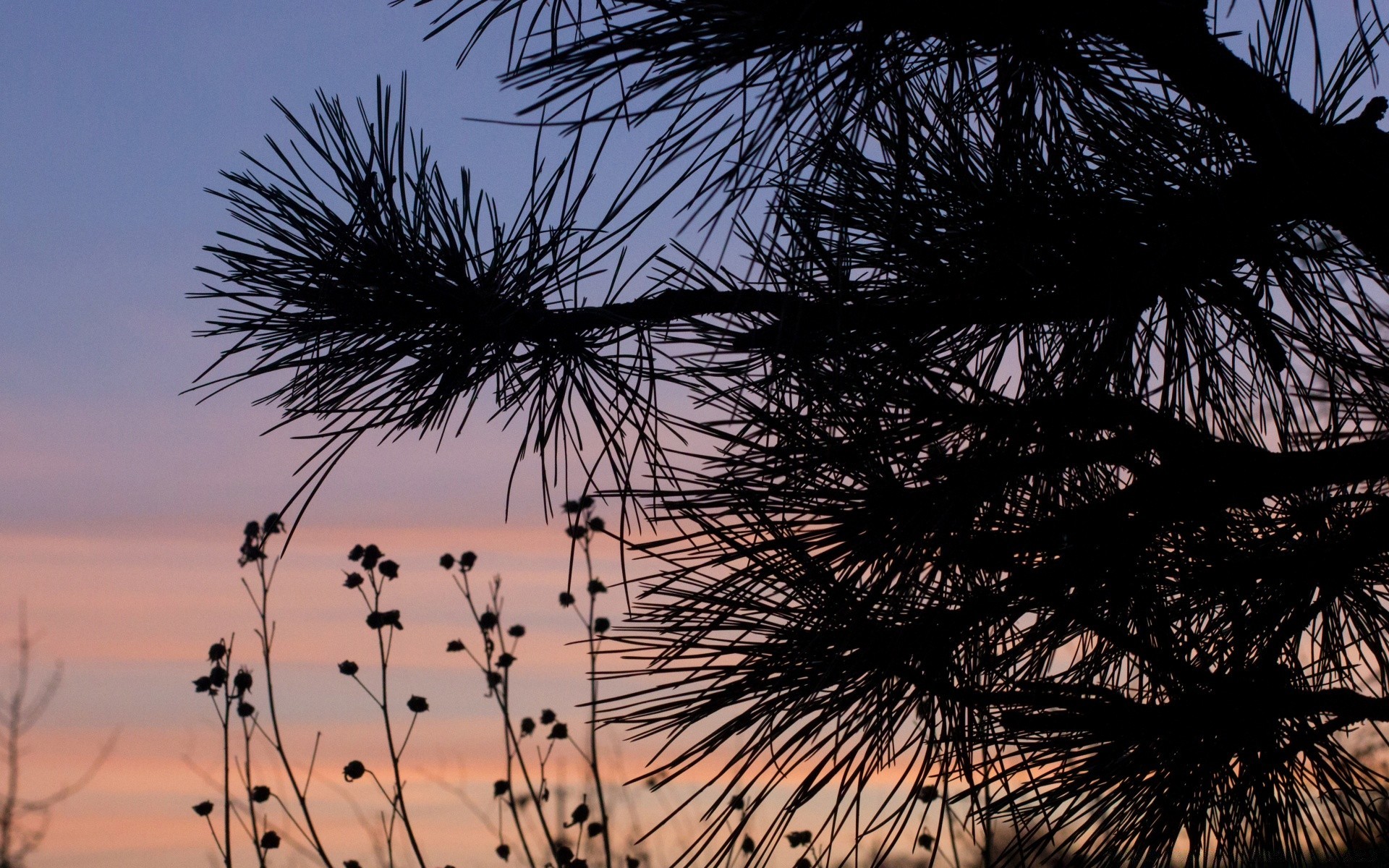 Patas de coníferas en el fondo de un día que se desvanece