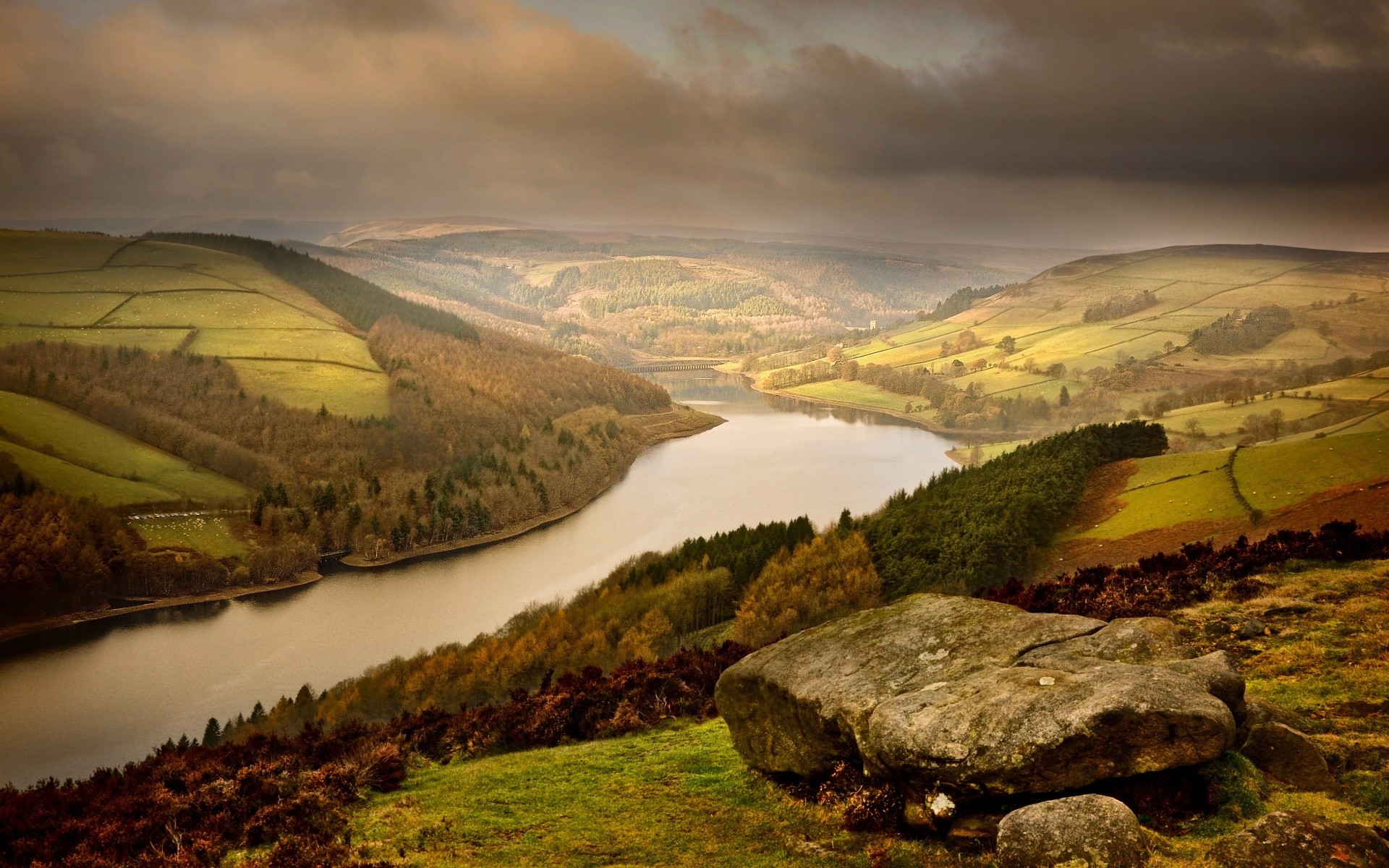 Piedras junto al mar. hermoso cielo en la palma de su manoPiedras junto al mar. Hermoso cielo en la palma de su mano
