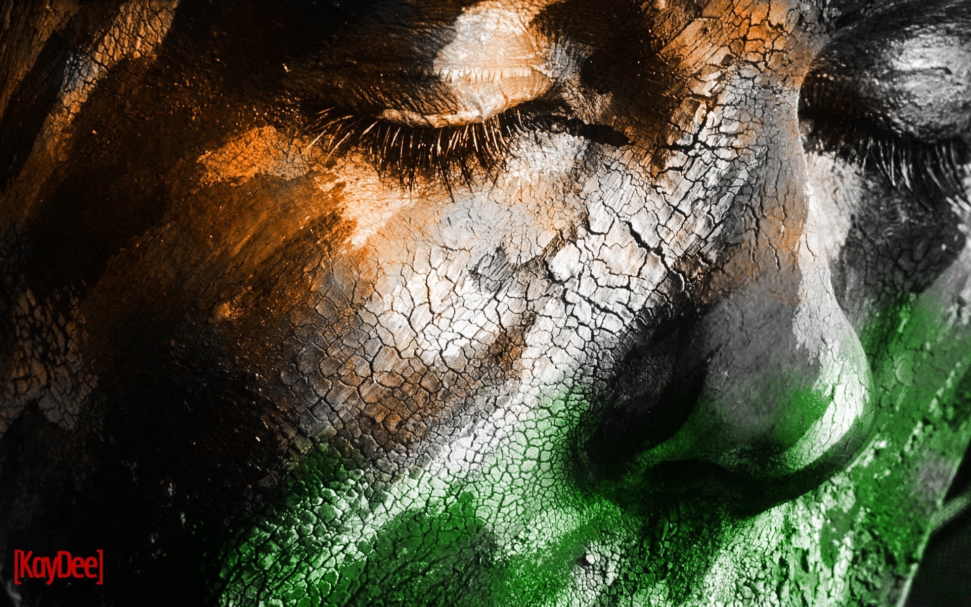 Una mancha de pintura blanca en el asfalto y una insignia de Apple en el centro