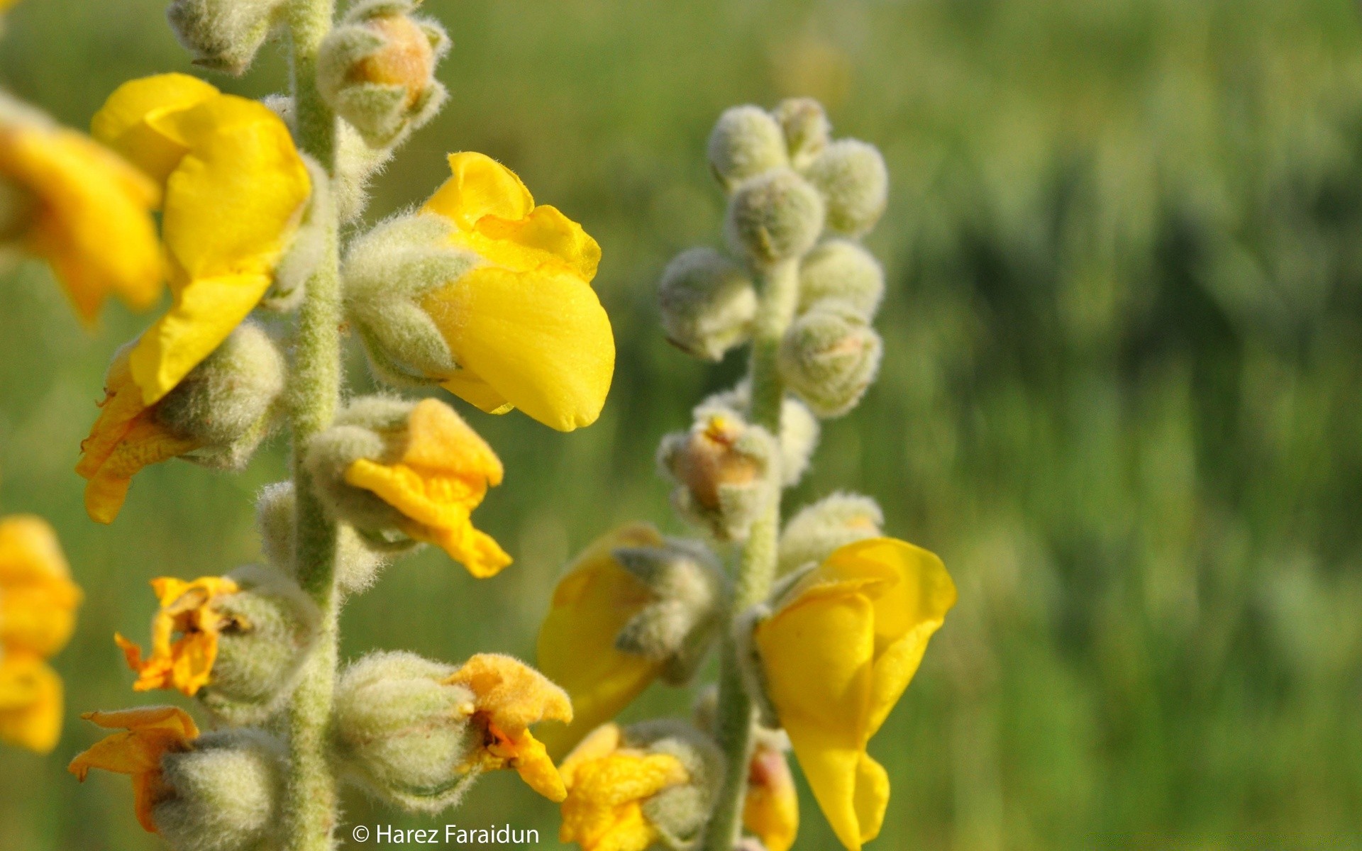 Flores amarillas brillantes sobre un fondo de vegetación