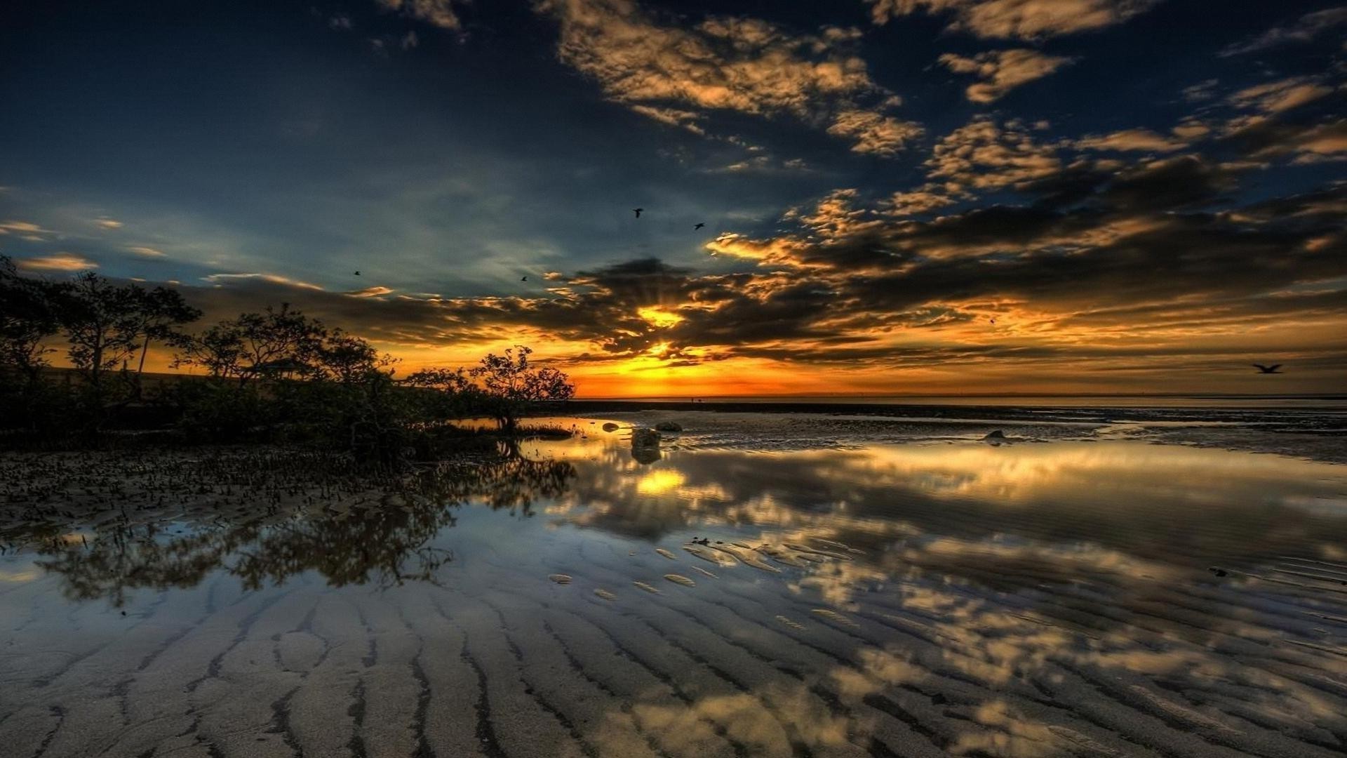 Amanecer con el reflejo de la luz en la superficie del aguaAmanecer con el reflejo de la luz en la superficie del agua