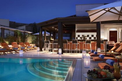 Hotel de lujo con piscina por la noche